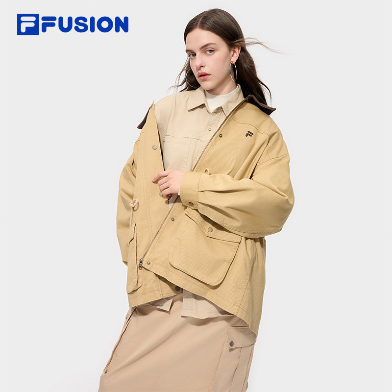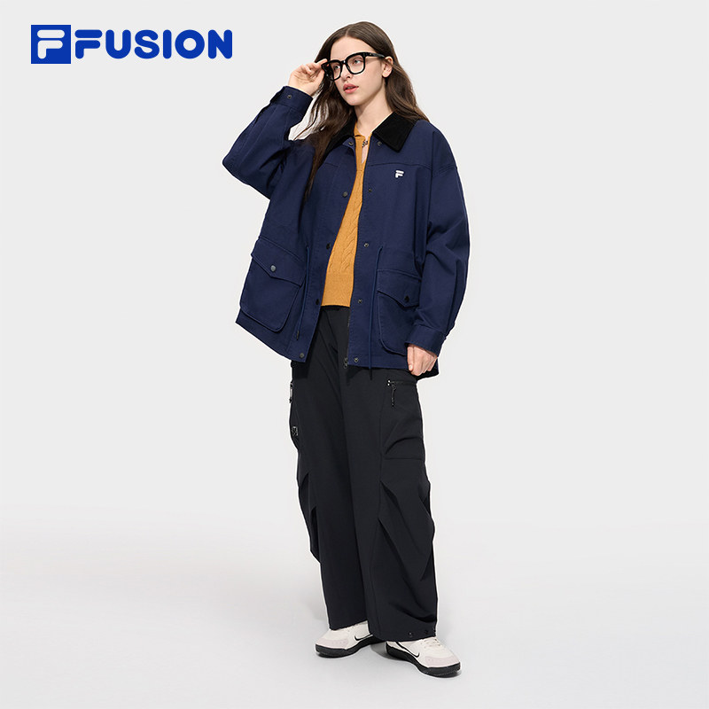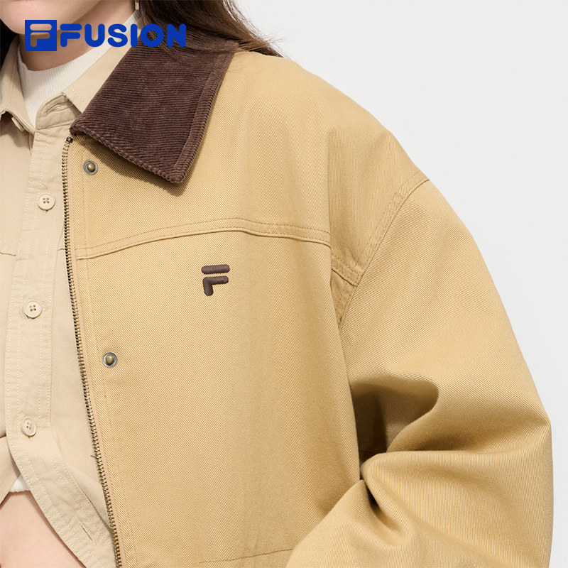 FILA FUSION斐乐潮牌梭织外套女2025冬季新款休闲巴恩风翻领上衣