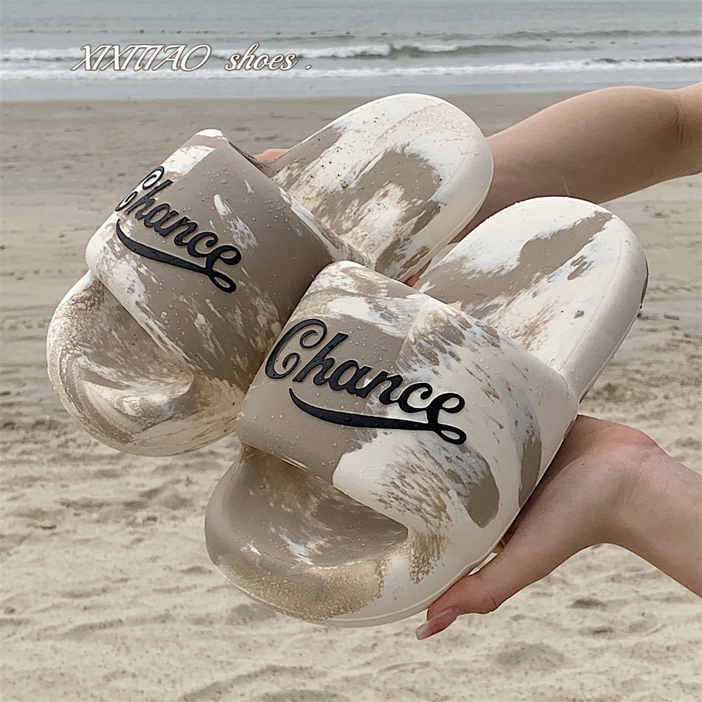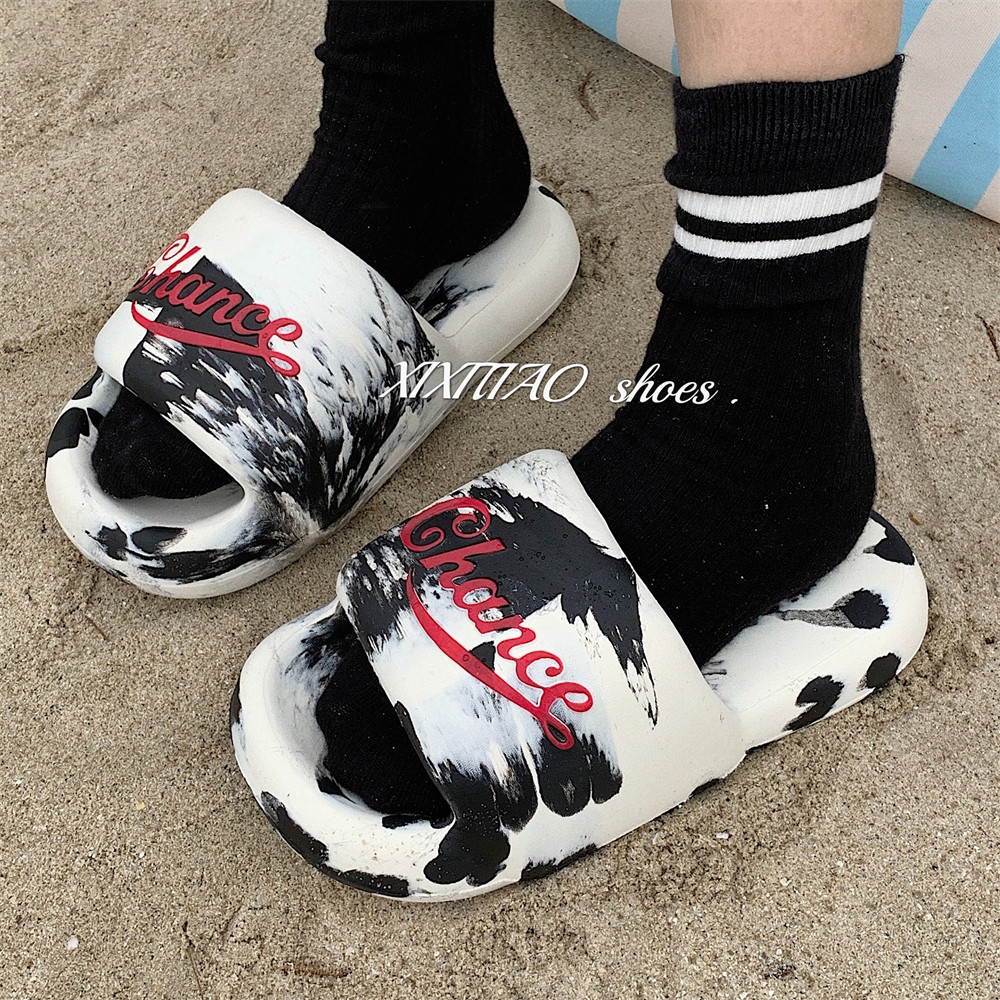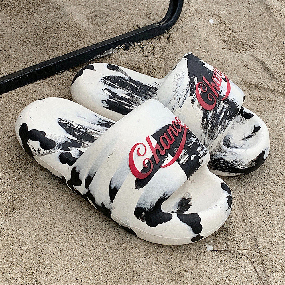 细细条个性街头风潮酷黑白撞色情侣拖鞋防滑eva户外沙滩鞋男女夏
