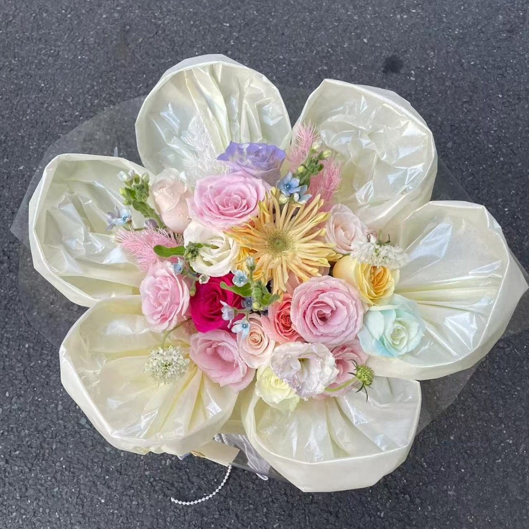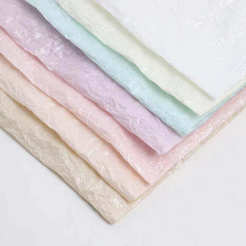 手揉珠光加厚雪梨纸花束包装内衬防水包花纸水果花篮褶皱装饰纸