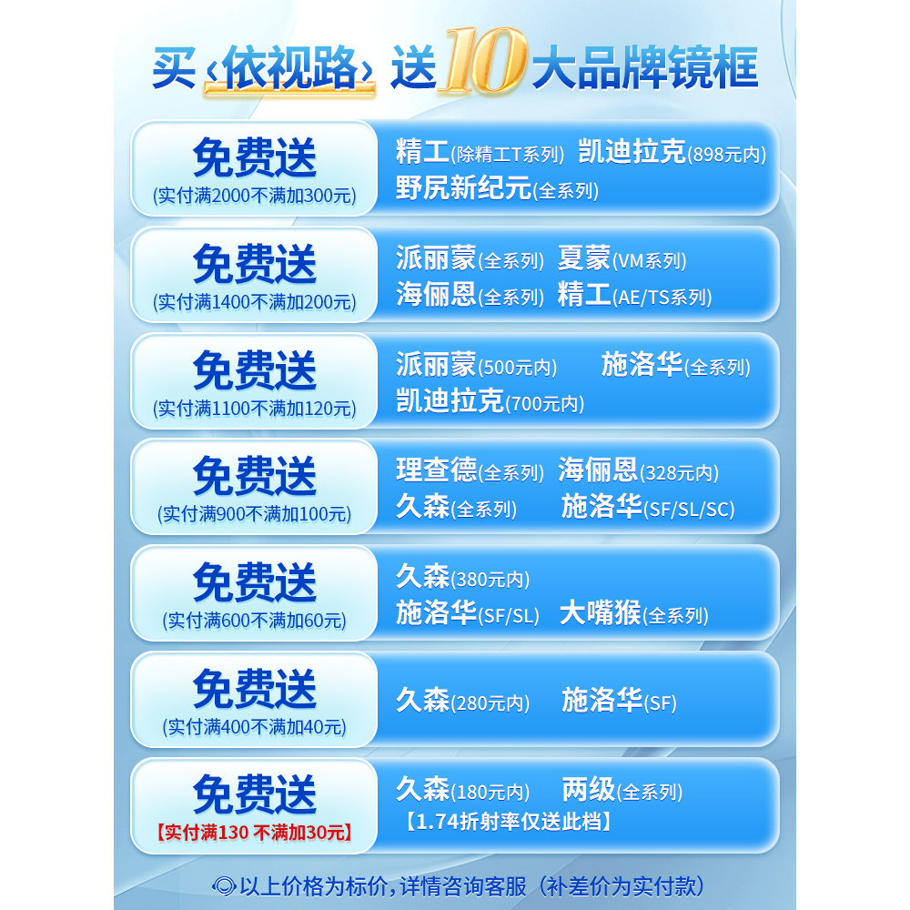 依视路镜片钻晶膜致防蓝光1.60膜岩近视超薄1.67膜臻眼镜片官方