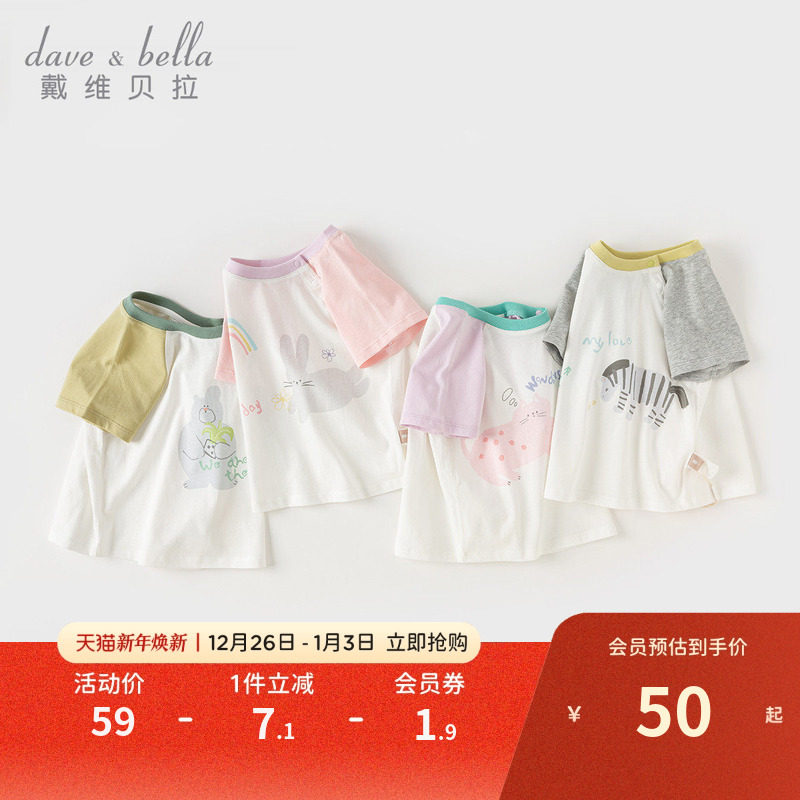 戴维贝拉儿童短袖T恤洋气夏装新款男童纯棉打底衫女宝宝上衣童装