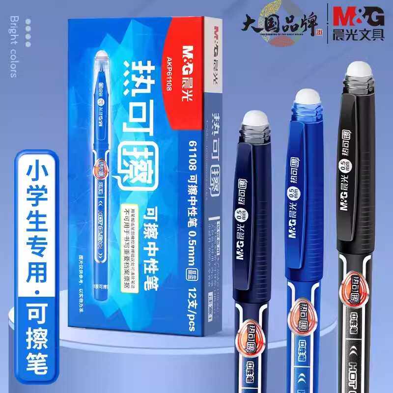 晨光可擦中性笔小学生专用热敏摩易擦黑色0.5mm子弹头按动式61108