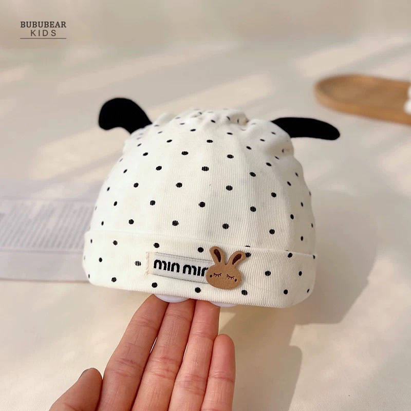 新生儿胎帽宝宝帽子春秋季薄款2025新款波点蝴蝶结无骨囟门帽纯棉