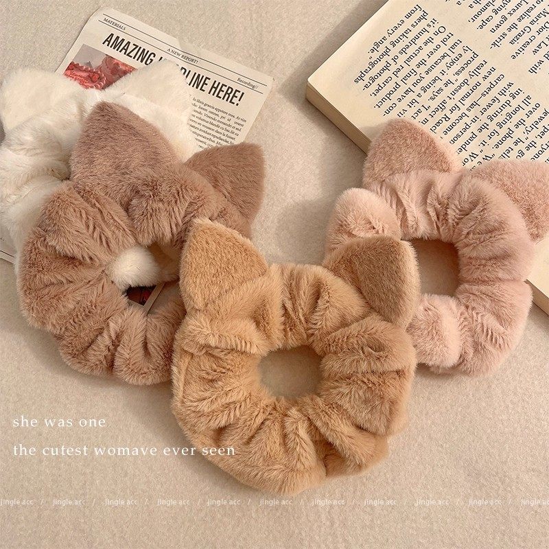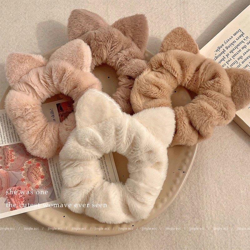 秋冬猫耳毛绒大肠发圈高马尾儿童发绳扎头发皮筋宝宝头绳头饰女童