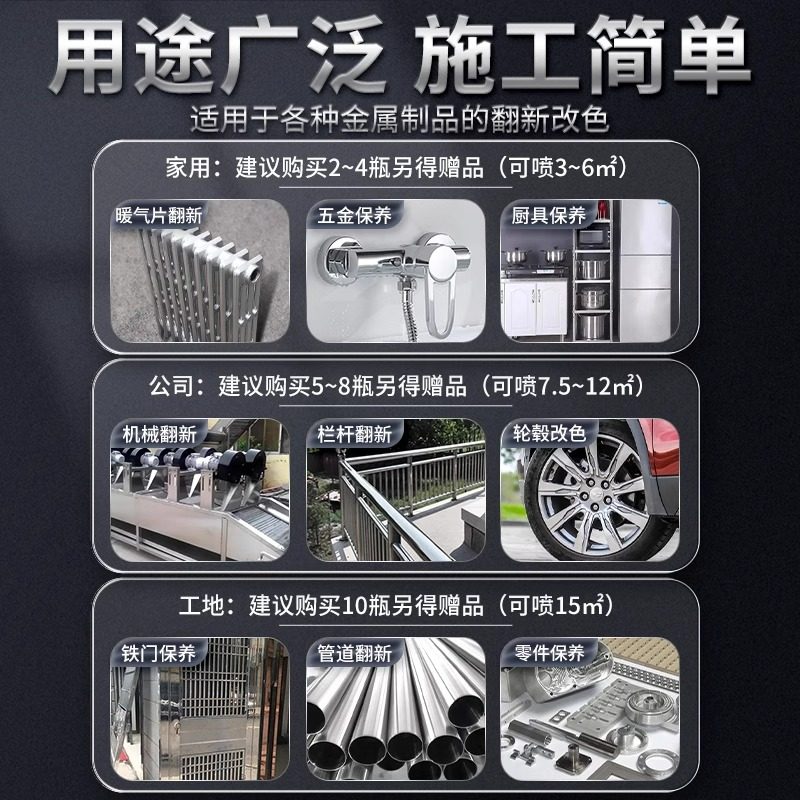 12瓶镀铬自喷漆不锈钢电镀金属防锈镀锌银粉漆银色油漆防腐轮毂
