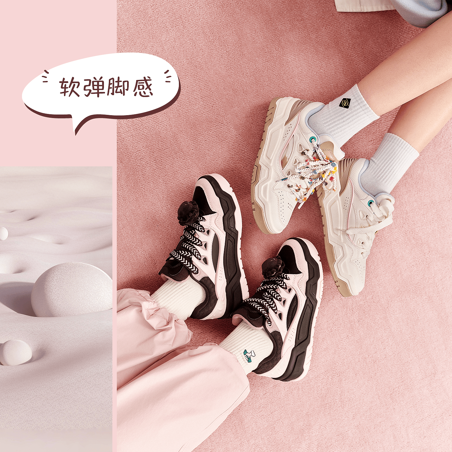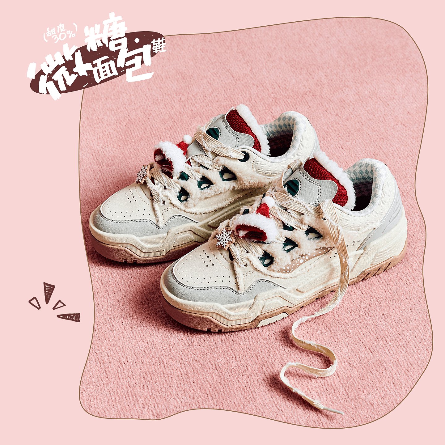 安踏微糖七夕面包鞋潮流厚底板鞋女鞋2025冬季新款情侣时尚运动鞋