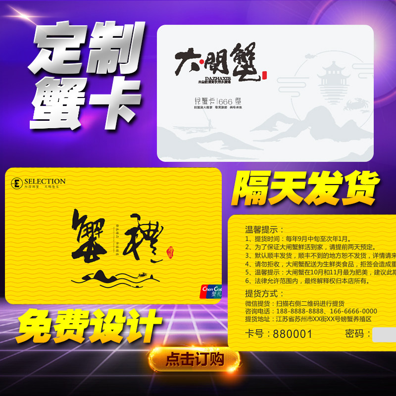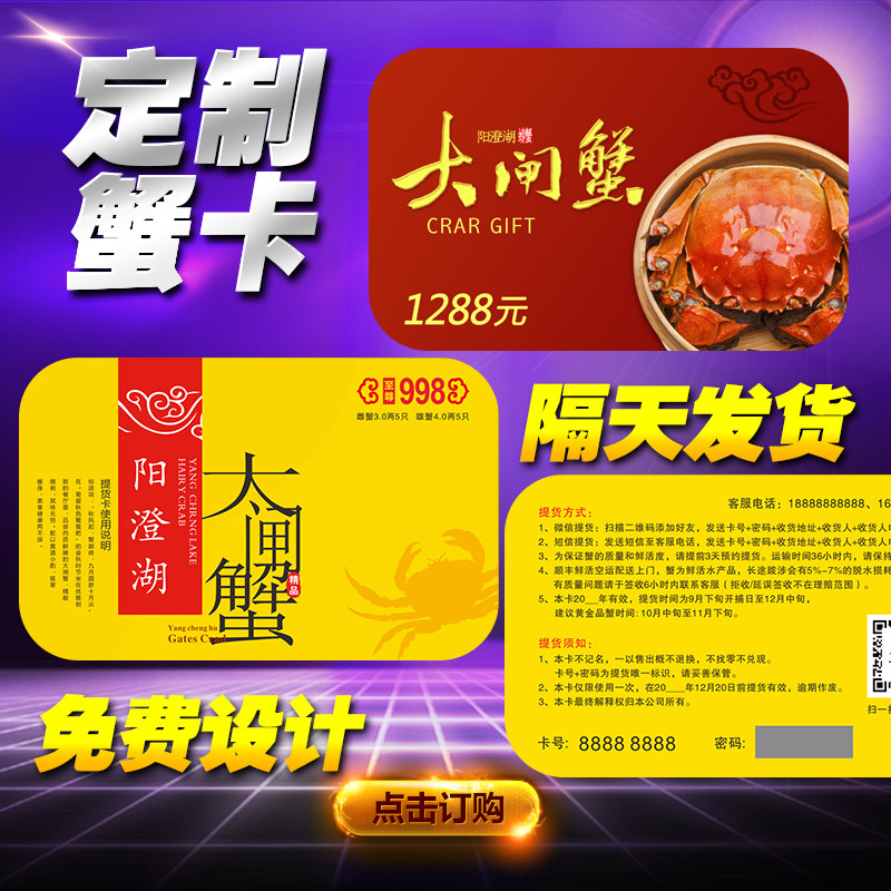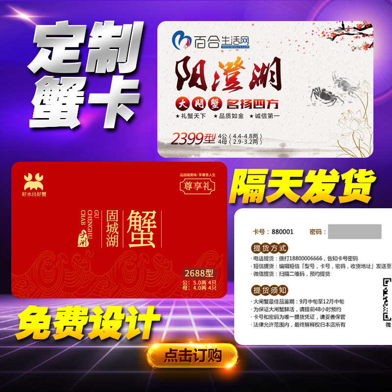 定制作大闸蟹刮刮卡提货券密码卡套大闸蟹提货卡PVC密码卡券印刷