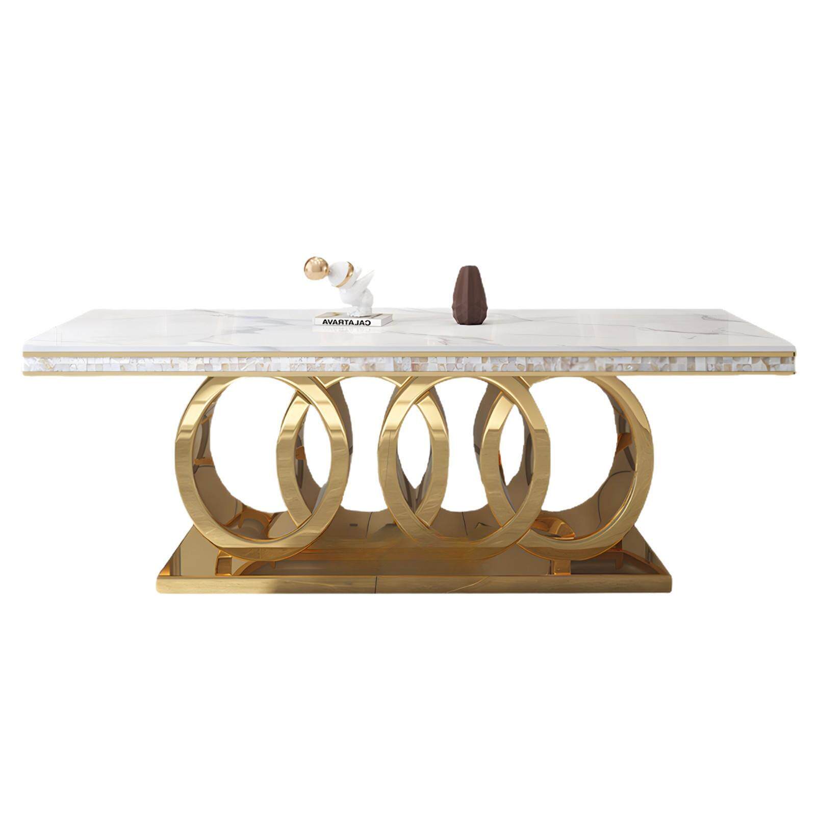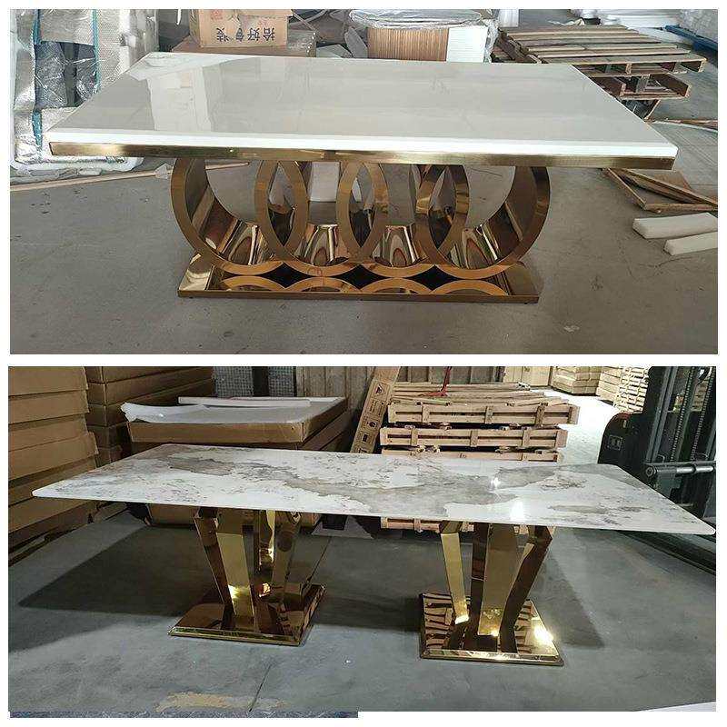 轻奢意式不锈钢大理石餐桌椅组合现代别墅家用大小户型微晶石饭桌