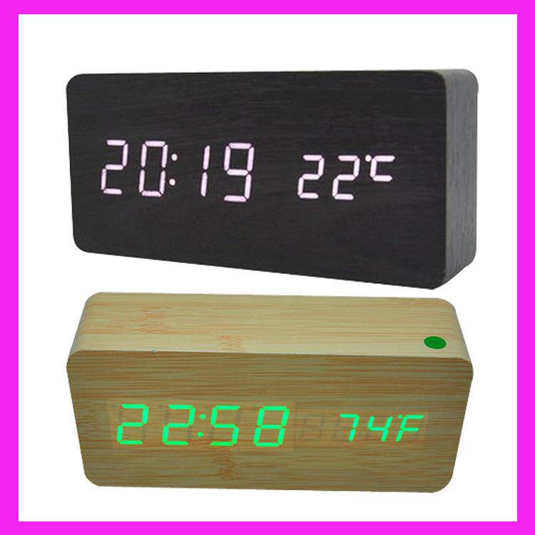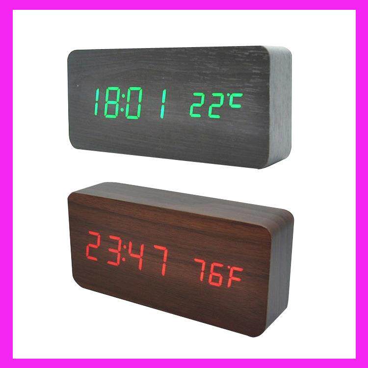创意木质led数字时钟双显电子木头座钟儿童静音台钟闹钟夜光