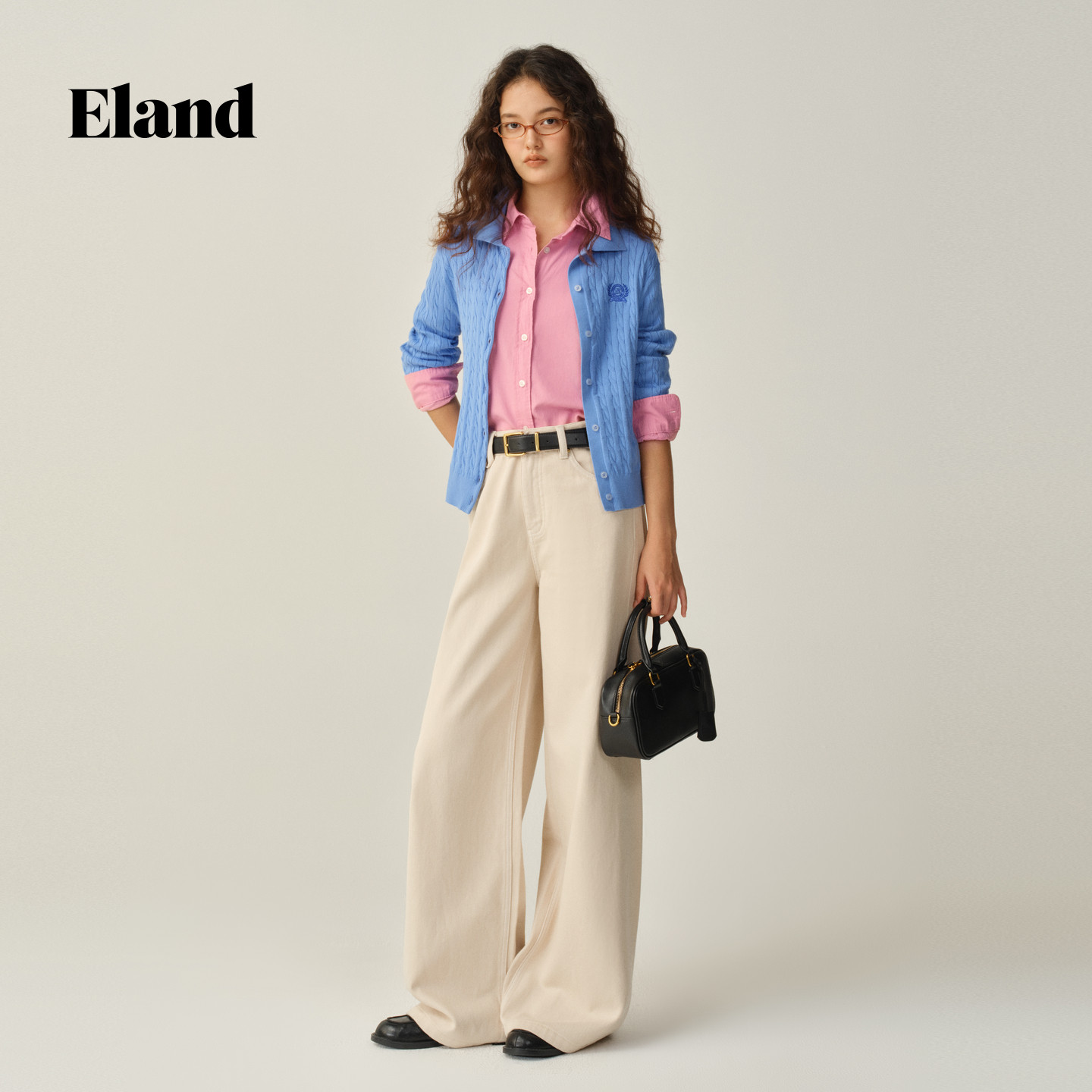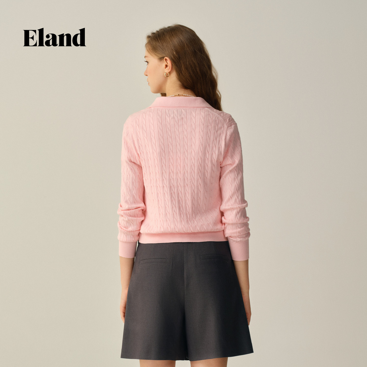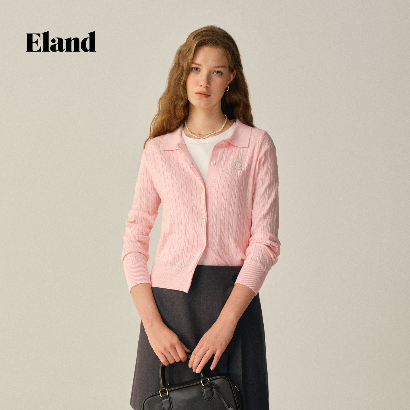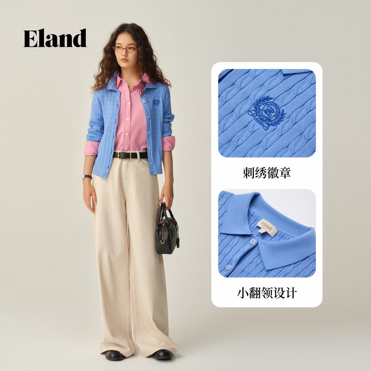 Eland衣恋毛针织衫女长袖翻领开衫休闲毛衣2025冬季新款