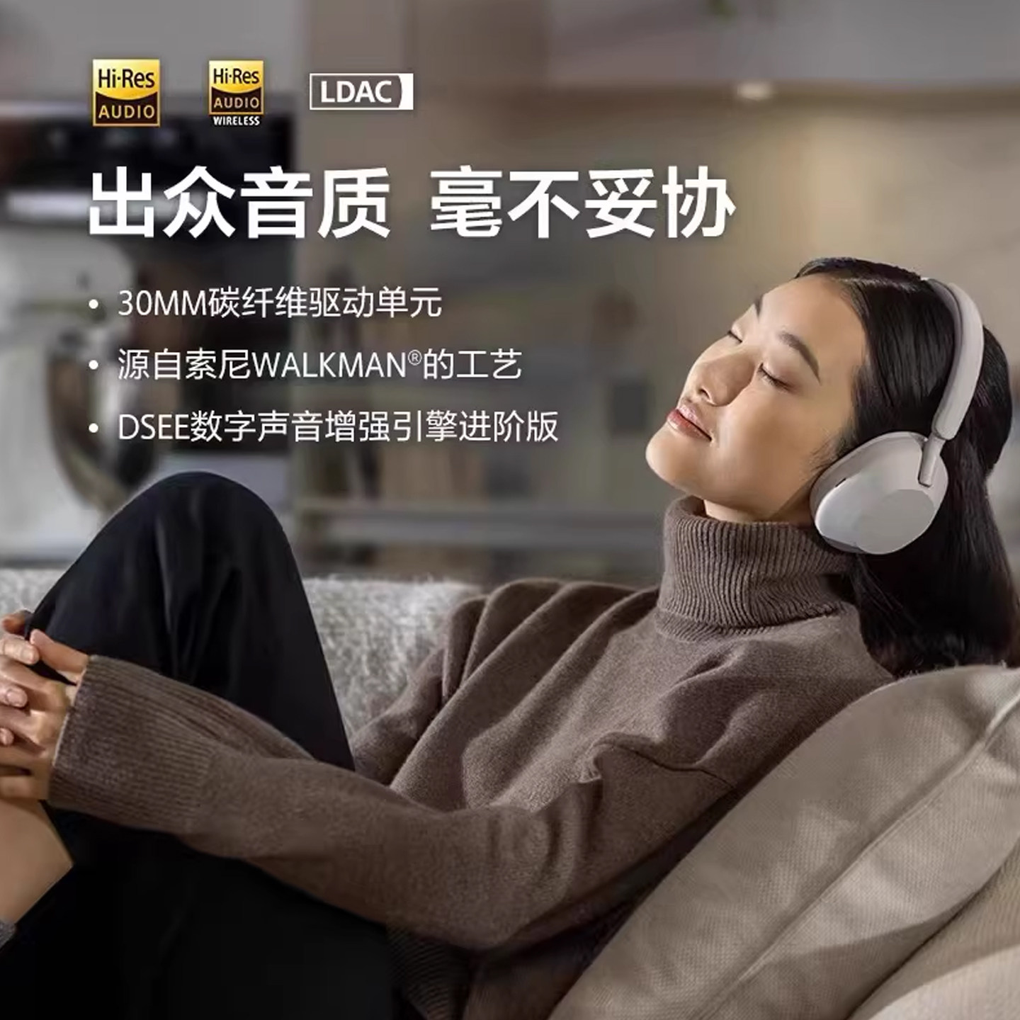 【国家补贴】Sony/索尼 WH-1000XM5 头戴式无线蓝牙降噪耳机xm5