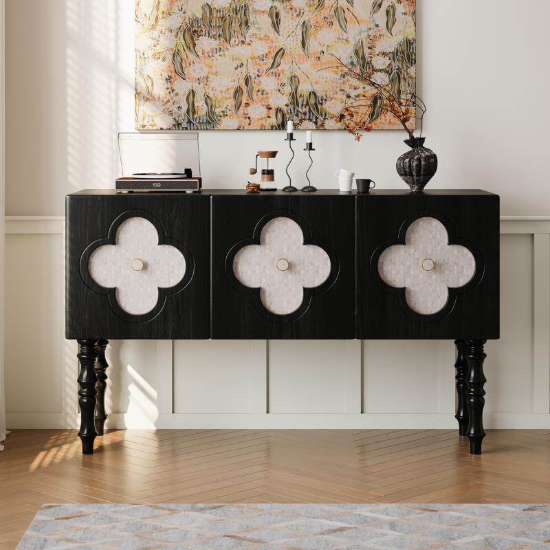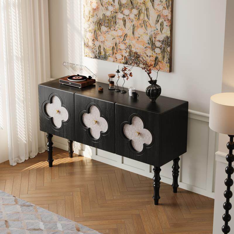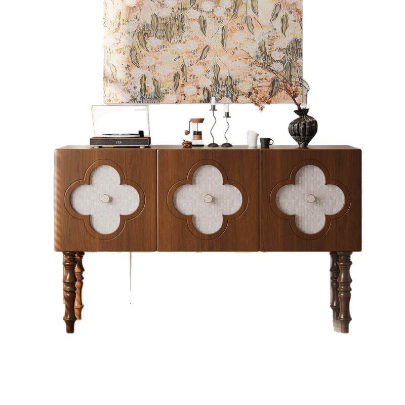 中古风实木斗柜四叶草餐边柜法式复古储物收纳置物装饰黑色玄关柜