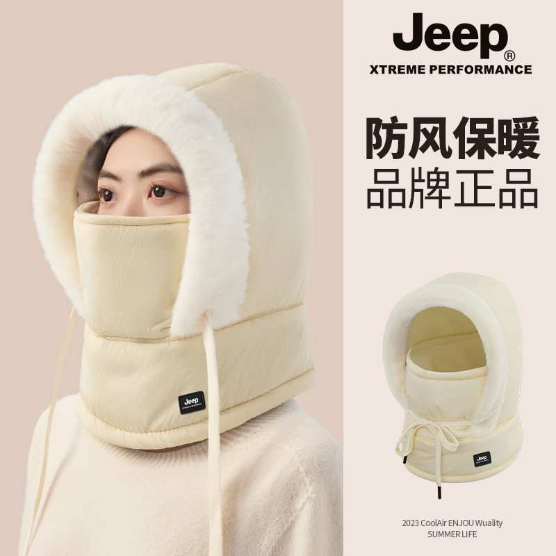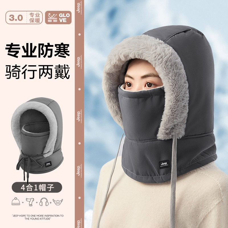jeep吉普女士雷锋帽冬季骑车保暖神器全脸面罩加厚套头帽棉子女冬
