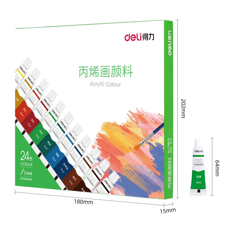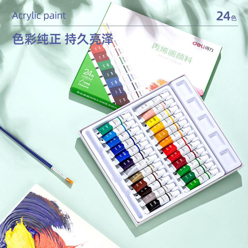 得力丙烯颜料套装防水防晒不掉色儿童无毒可水洗油画手绘墙绘画聚丙烯小支盒装美术生专用染料涂料24色12色