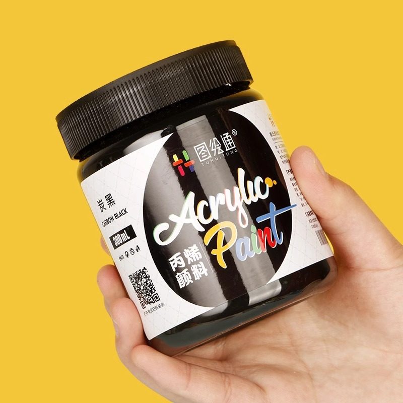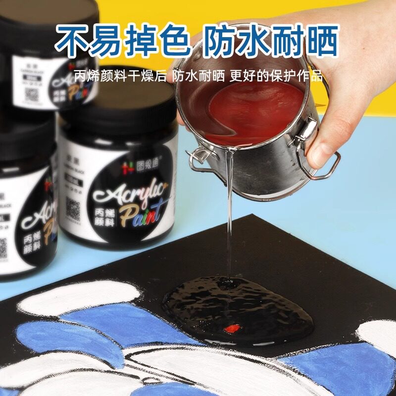 100ml黑色丙烯颜料瓶装防水防晒不掉色美术生专用手绘diy大瓶300毫升炭黑绘画染料碳黑2L墙绘涂料肌理画材料