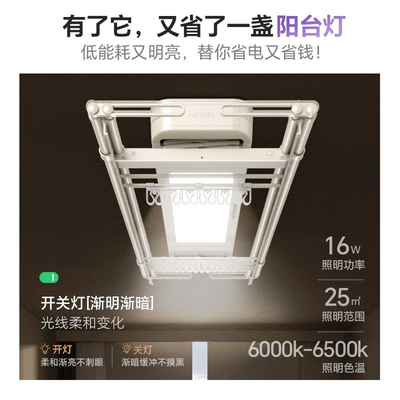 太太乐智能电动晾衣架家用遥控自动升降阳台灯型隐藏嵌入式晒衣杆