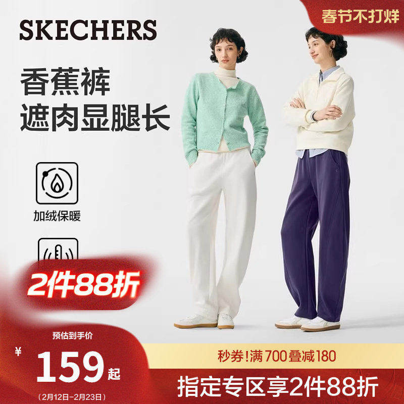 斯凯奇春新款香蕉裤女卫裤长裤休闲运动裤宽松阔腿时尚显瘦弯刀裤
