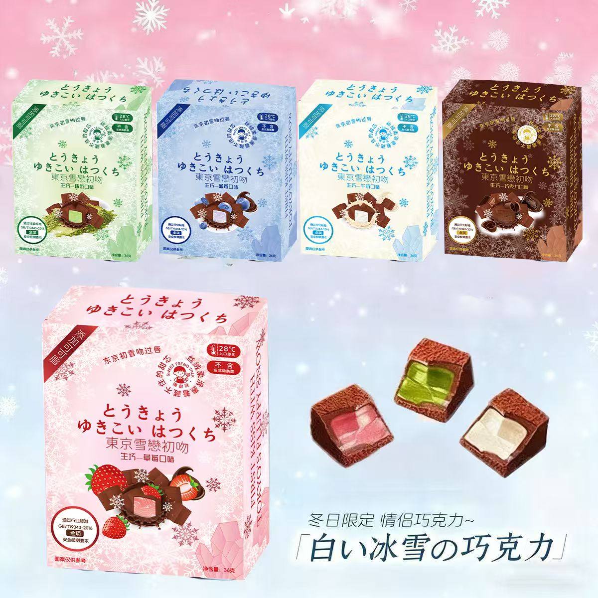 冬日生巧雪恋吻可可脂夹心巧克力抹茶草莓喜糖恋人送礼年货节多种