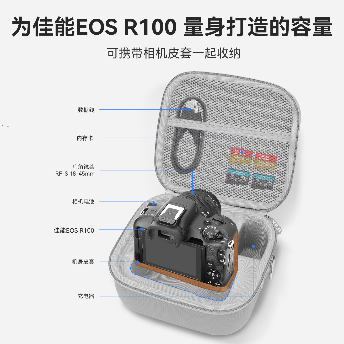 XFJI适用于佳能R100相机包R50相机保护套M50保护壳微单斜挎包防摔配件便携配件箱街拍手柄包防摔防水撞收纳包