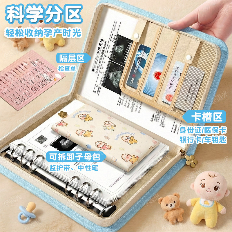 产检收纳册孕检收纳袋孕妇初期必备用品医院报告单孕期档案册带拉链产检本孕妈产检包检查资料记录册活页便携