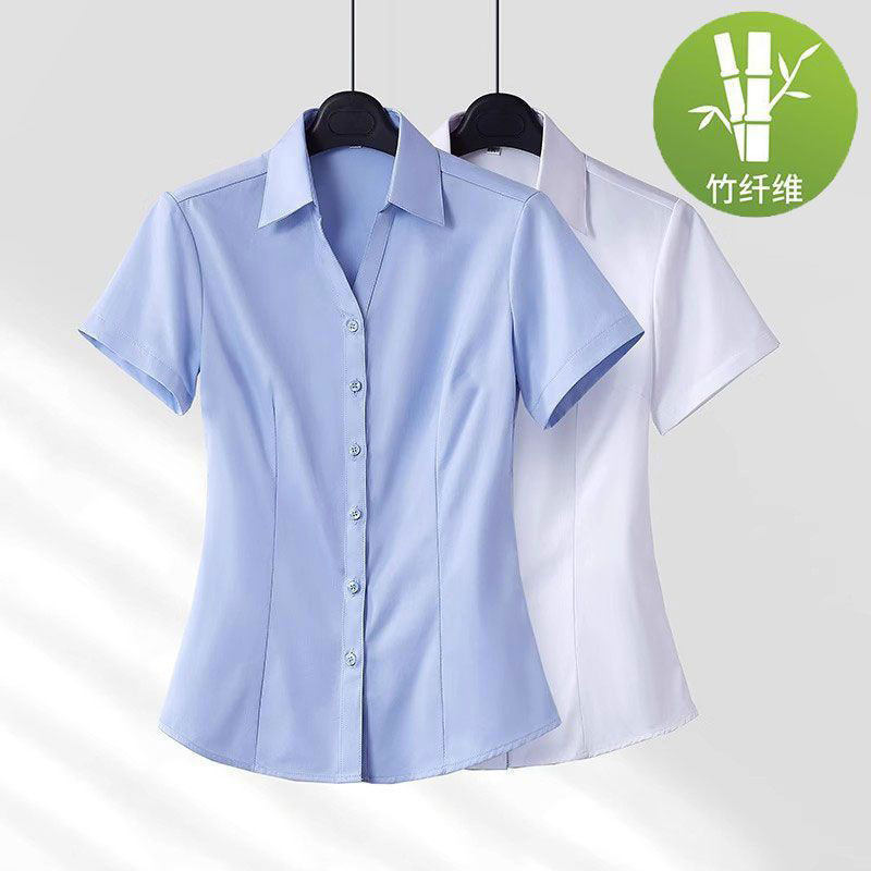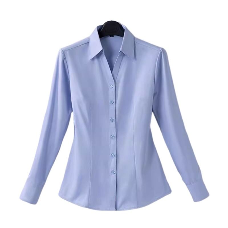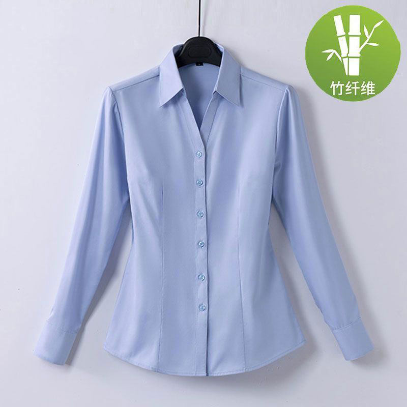 竹纤维白衬衫女春秋季长袖大码高端免烫商务上衣ol通勤职业蓝衬衣