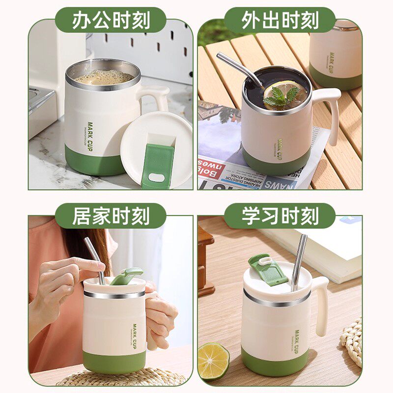 马克杯带盖泡杯子家用喝水杯早餐杯办公室水杯咖啡杯冲泡茶杯女生