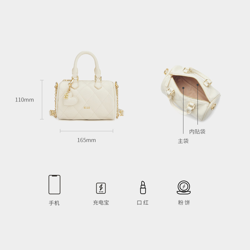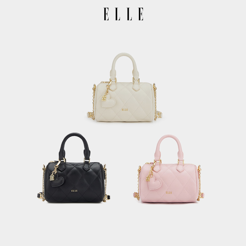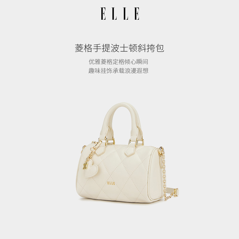 ELLE女包新款包包简约菱格波士顿包手提包黑色小众好看通勤链条包