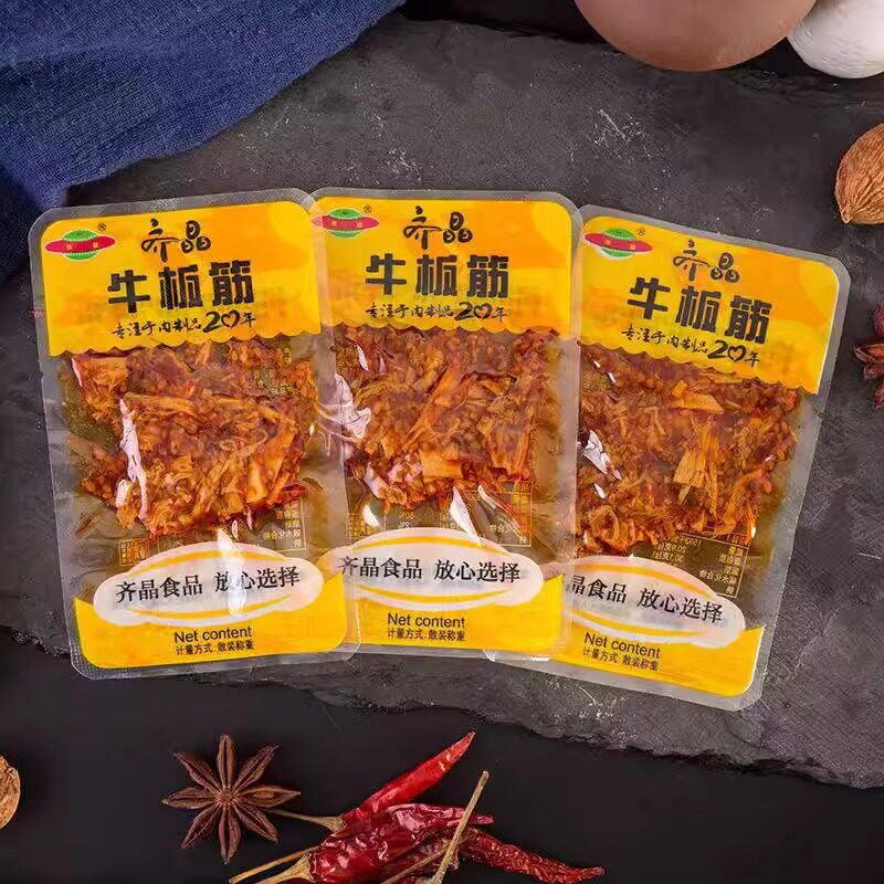 湖南特产齐晶牛板筋麻辣牛肉干辣条小零食小吃小包装休闲食品牛筋
