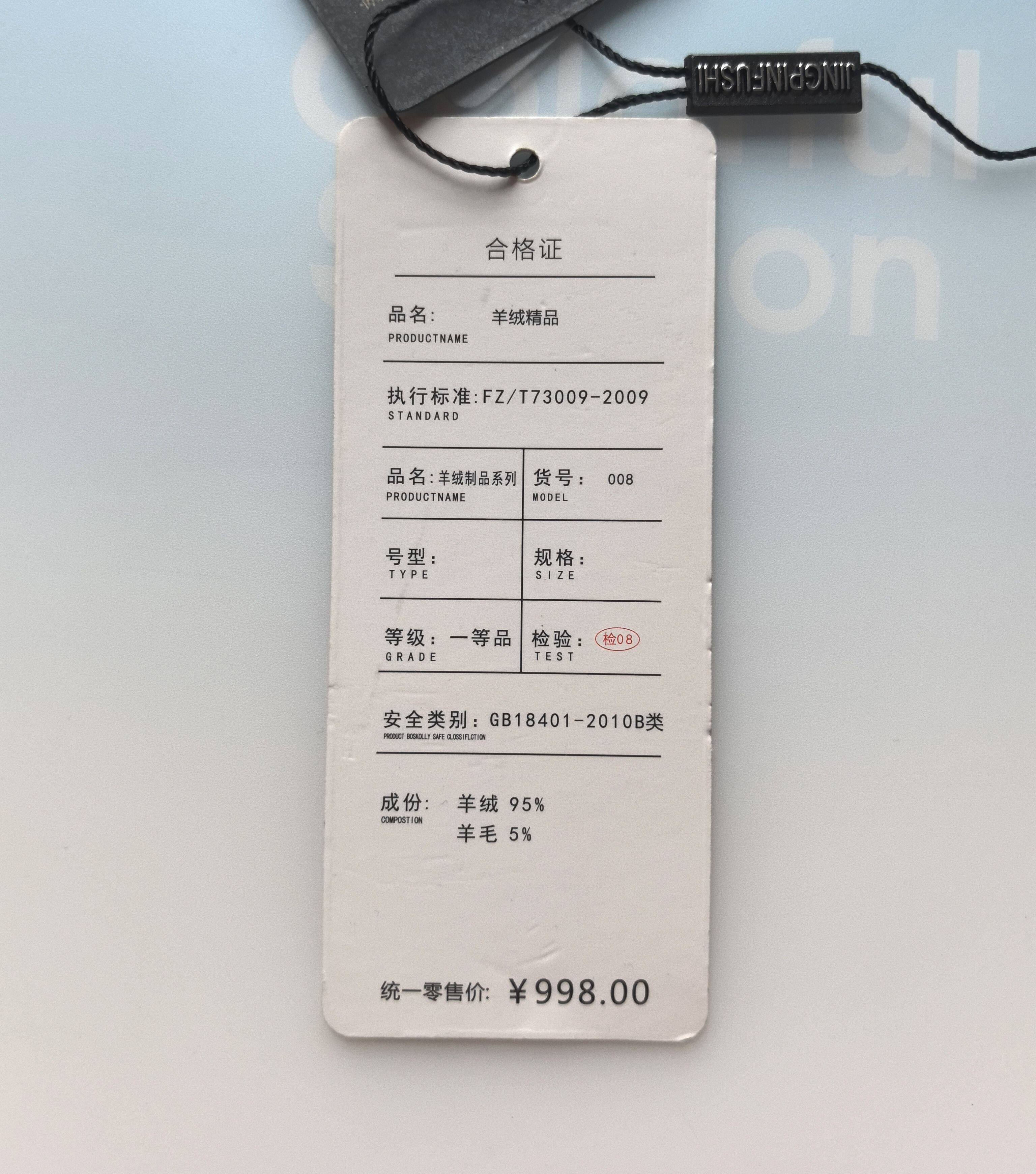 羊绒吊牌95%羊绒衫吊牌带价格998羊毛吊牌吊牌大气上档次衣服标签