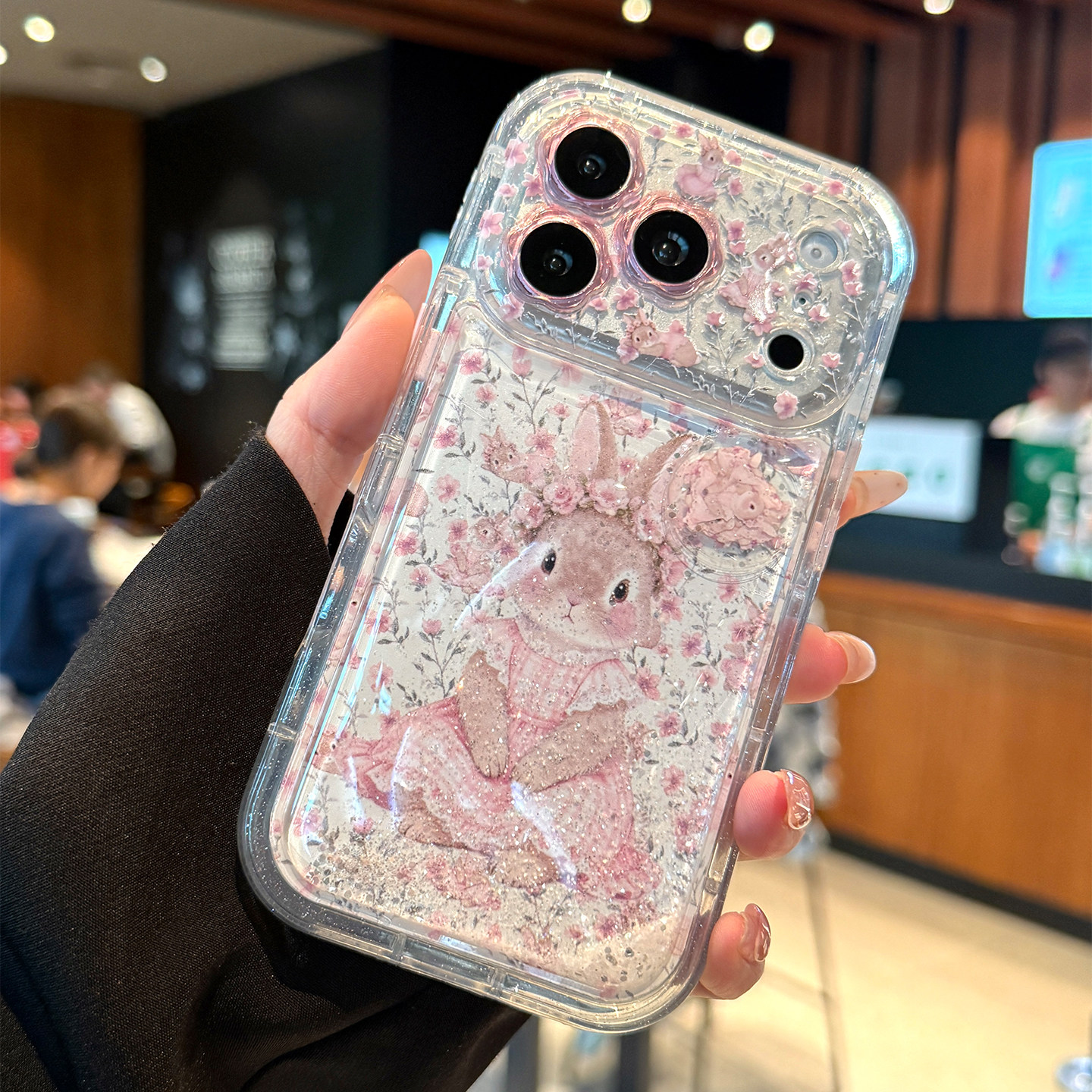适用苹果17promax手机壳新款iphone17粉色流沙可爱兔兔17pro高级感16镜头全包防摔15透明pro硅胶14女小众超火