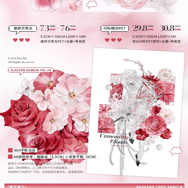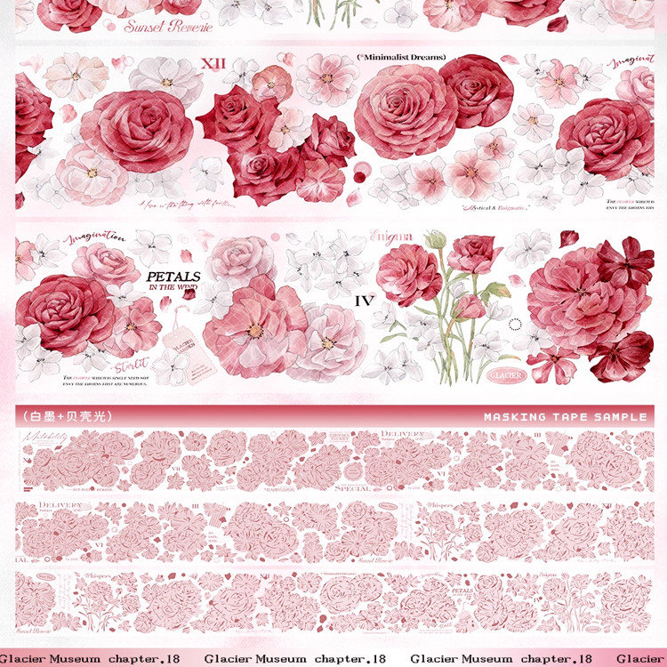 满18包邮冰川研究所胭脂谣-贝壳光分装特材拼贴流麻手帐胶带