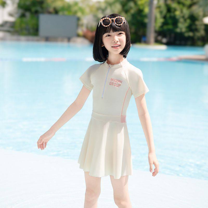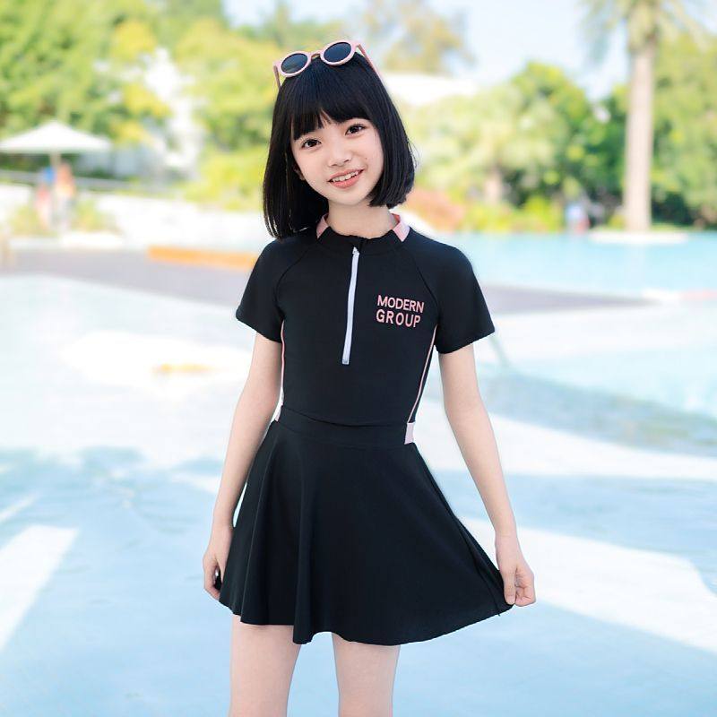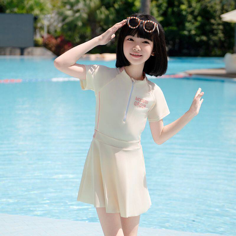 儿童泳衣女童连体中大童青少年2025新款裙式学生运动泳装女孩套装