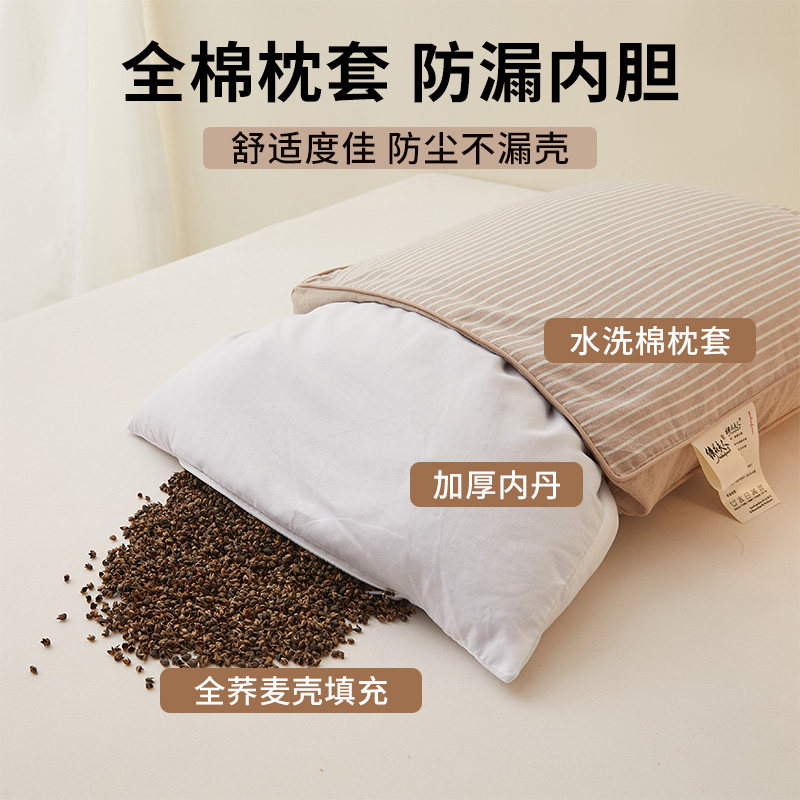 全棉荞麦枕头硬枕芯护颈椎枕助睡眠专用荞麦皮壳成人家用一对内胆