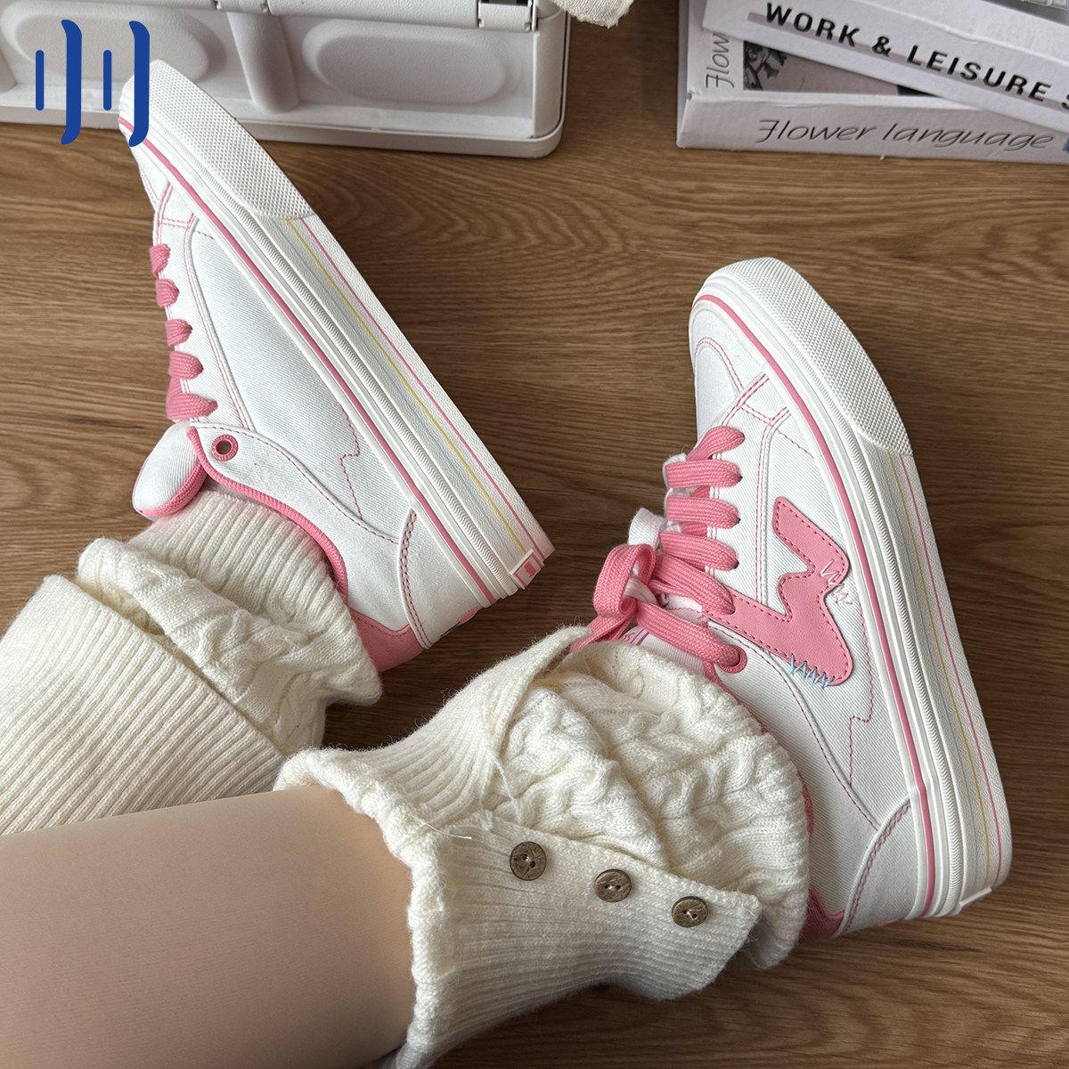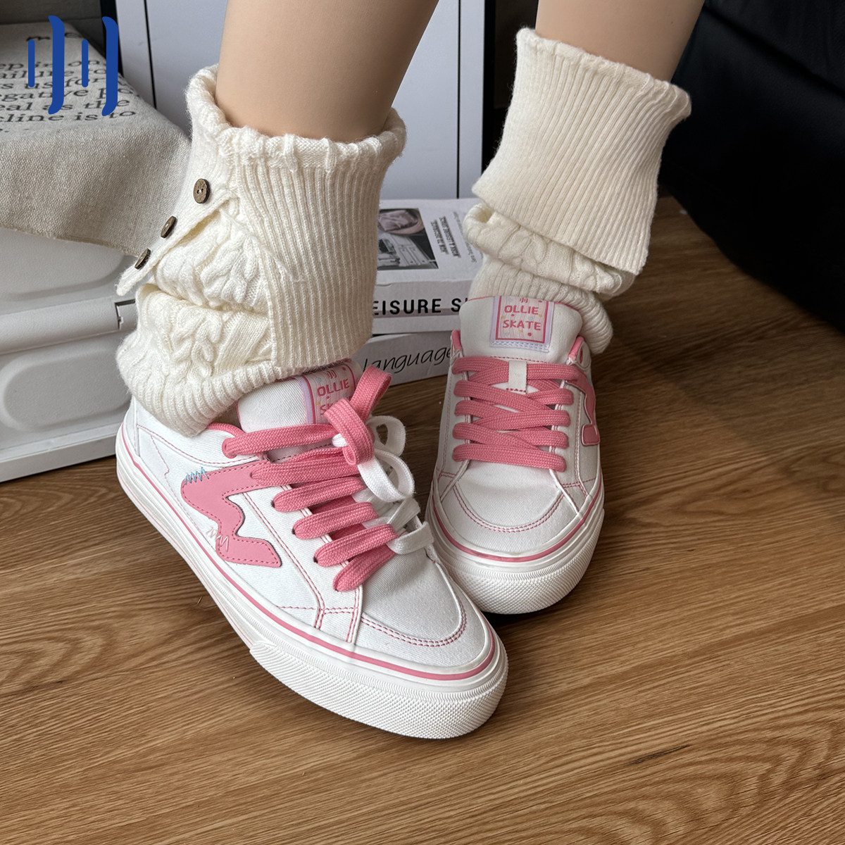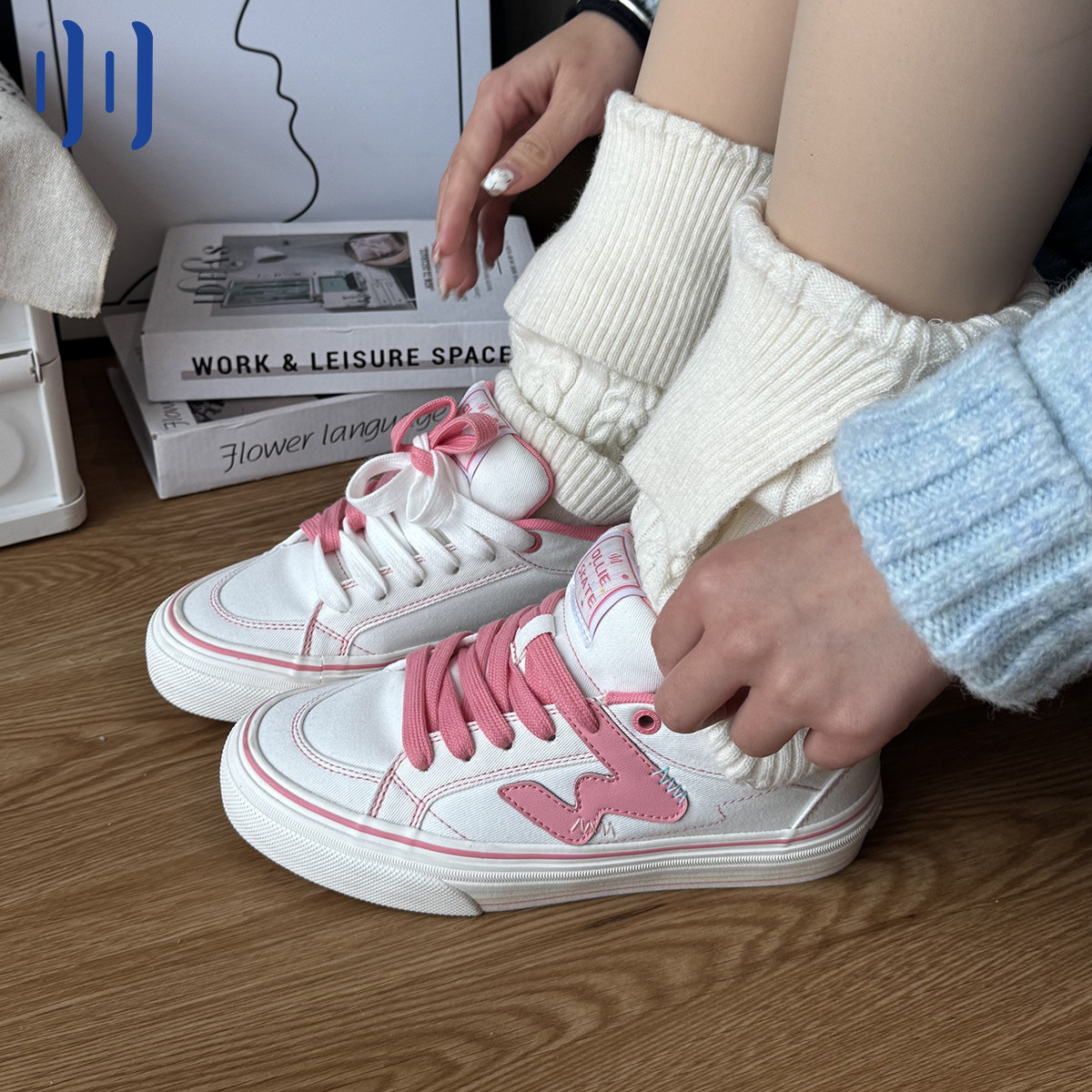 顽刻官方白粉拼色小樱桃学生校园风W系列休闲低帮男女国潮滑板鞋