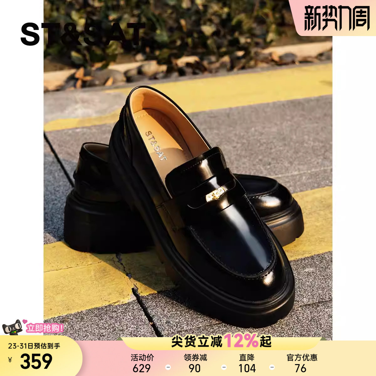 【头层牛皮】星期六真皮厚底乐福鞋女英伦风小皮鞋一脚蹬复古单鞋