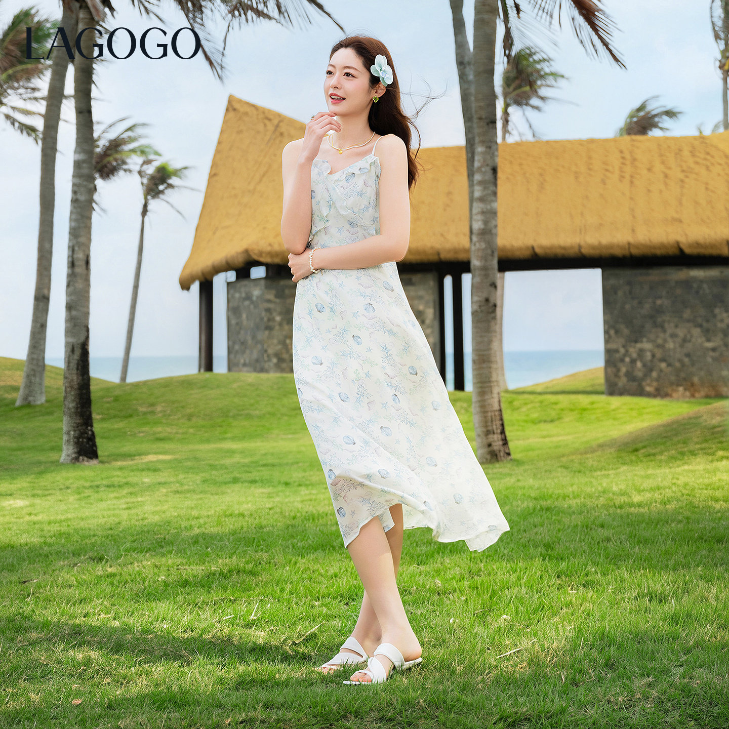 LAGOGO雪纺碎花吊带连衣裙女拉谷谷2026夏新款海边丁达尔裙两件套