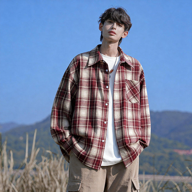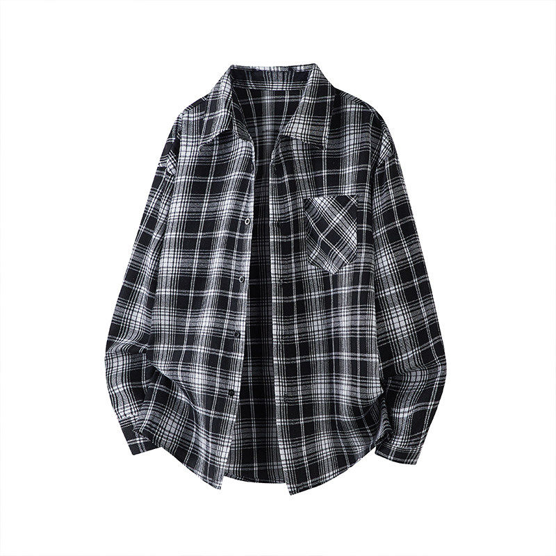 查尔斯桃心美式长袖衬衫男士春秋夏季薄款宽松休闲格子衬衣女外套
