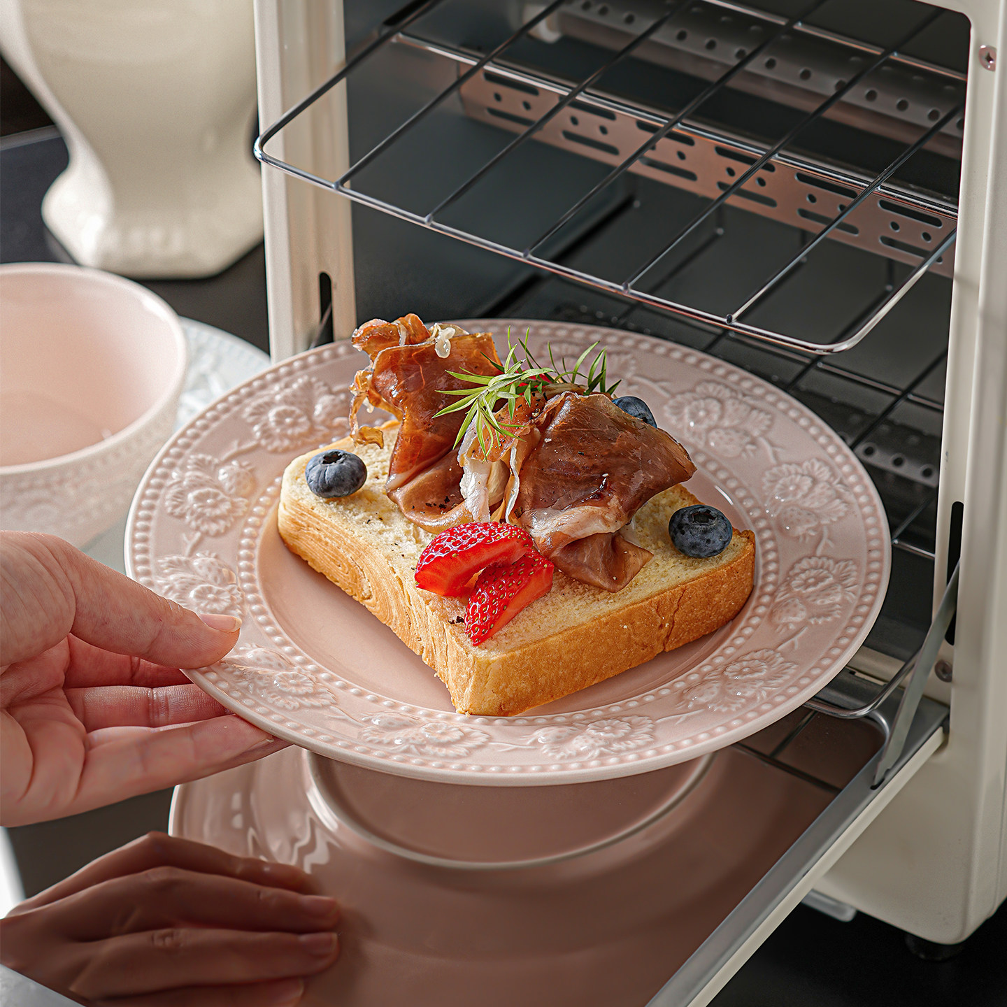 奶油风陶瓷碗家用卡通菜盘子可爱米饭碗汤碗釉下彩儿童餐具耐高温