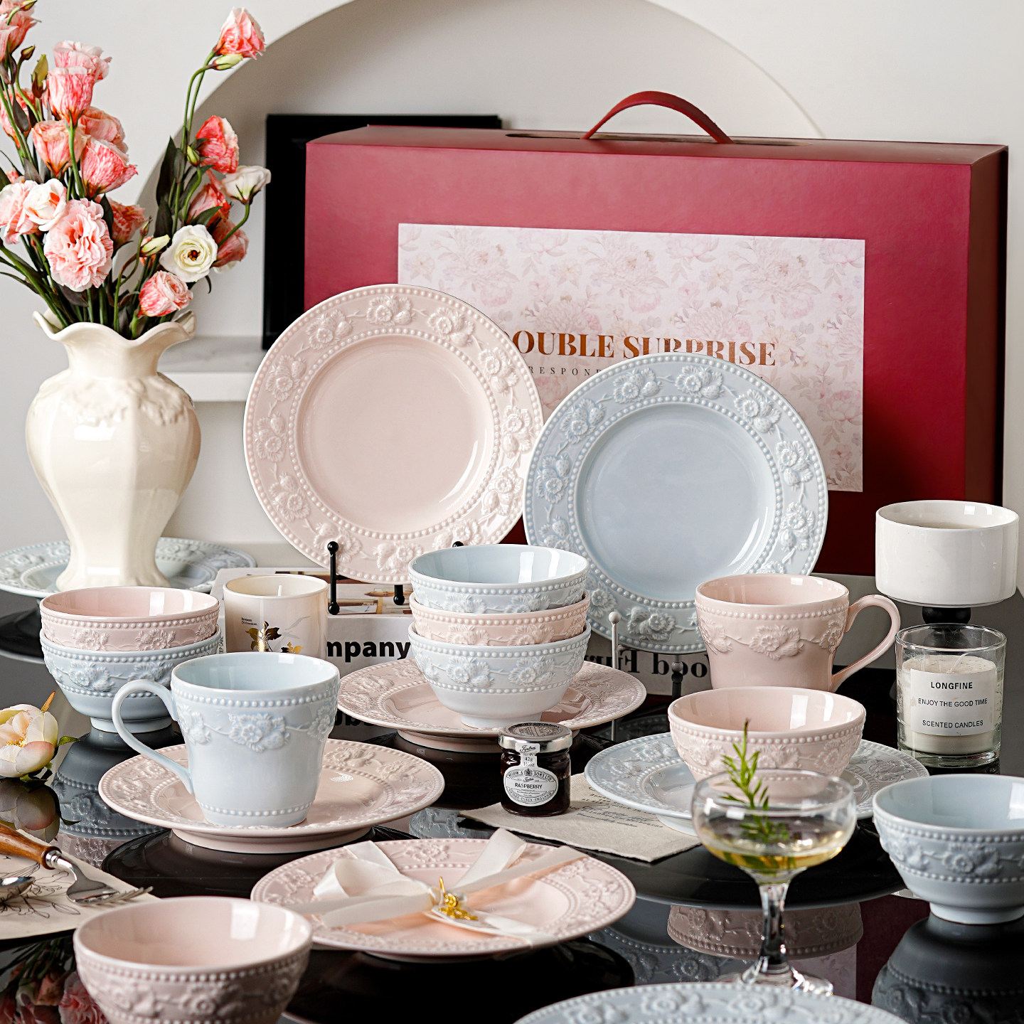 陶瓷碗具釉下彩漂亮餐具套装碗碟套装乔迁新婚礼物结婚礼物送新娘