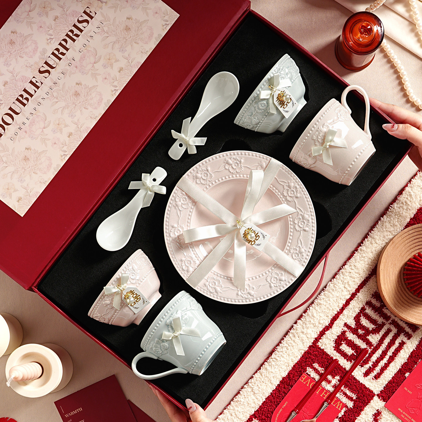 高档碗碟餐具陶瓷新婚礼物送新娘红色碗盘筷套装乔迁新居结婚礼盒