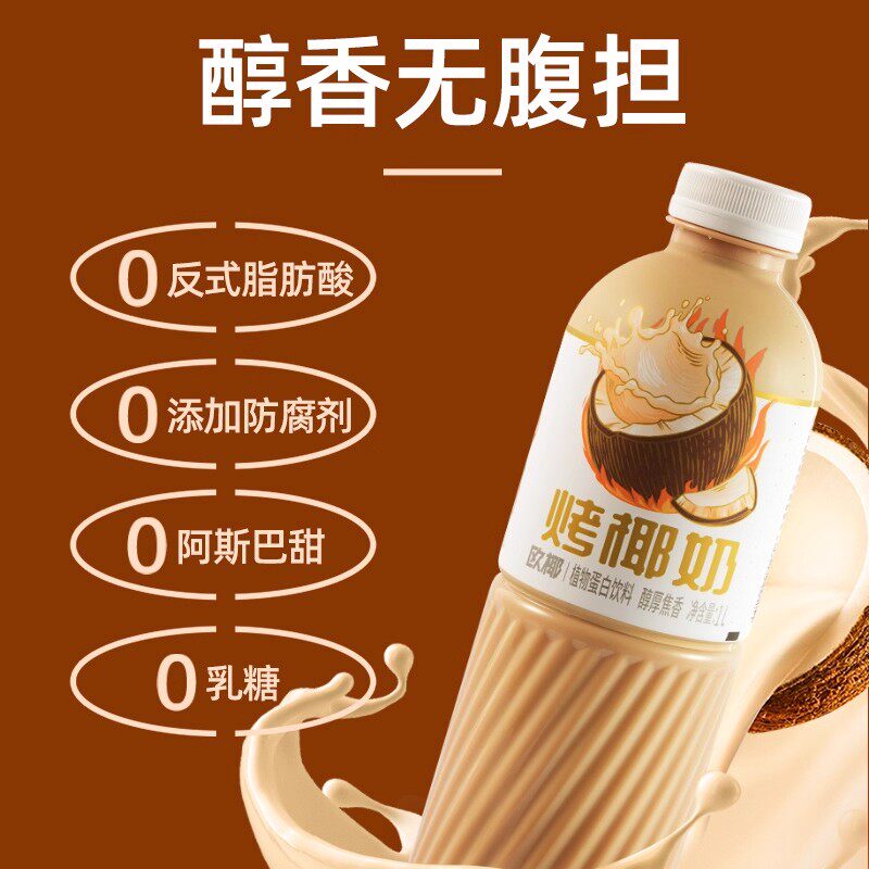 哪吒欧椰烤椰奶植物饮品进口椰子早餐奶椰汁1L*2大瓶瓶装好喝