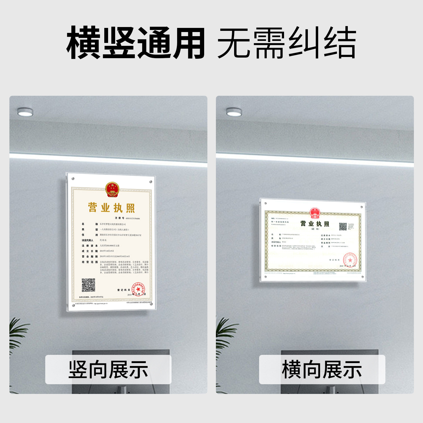 亚克力悬浮相框a4专利证书展示牌营业执照框架挂墙标识牌教师形象墙a3奖状荣誉证件书展示框广告海报框