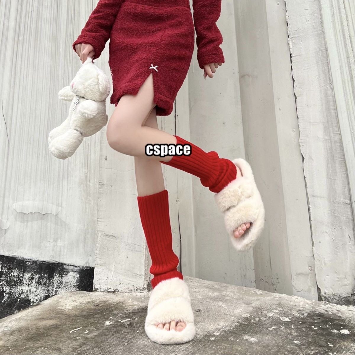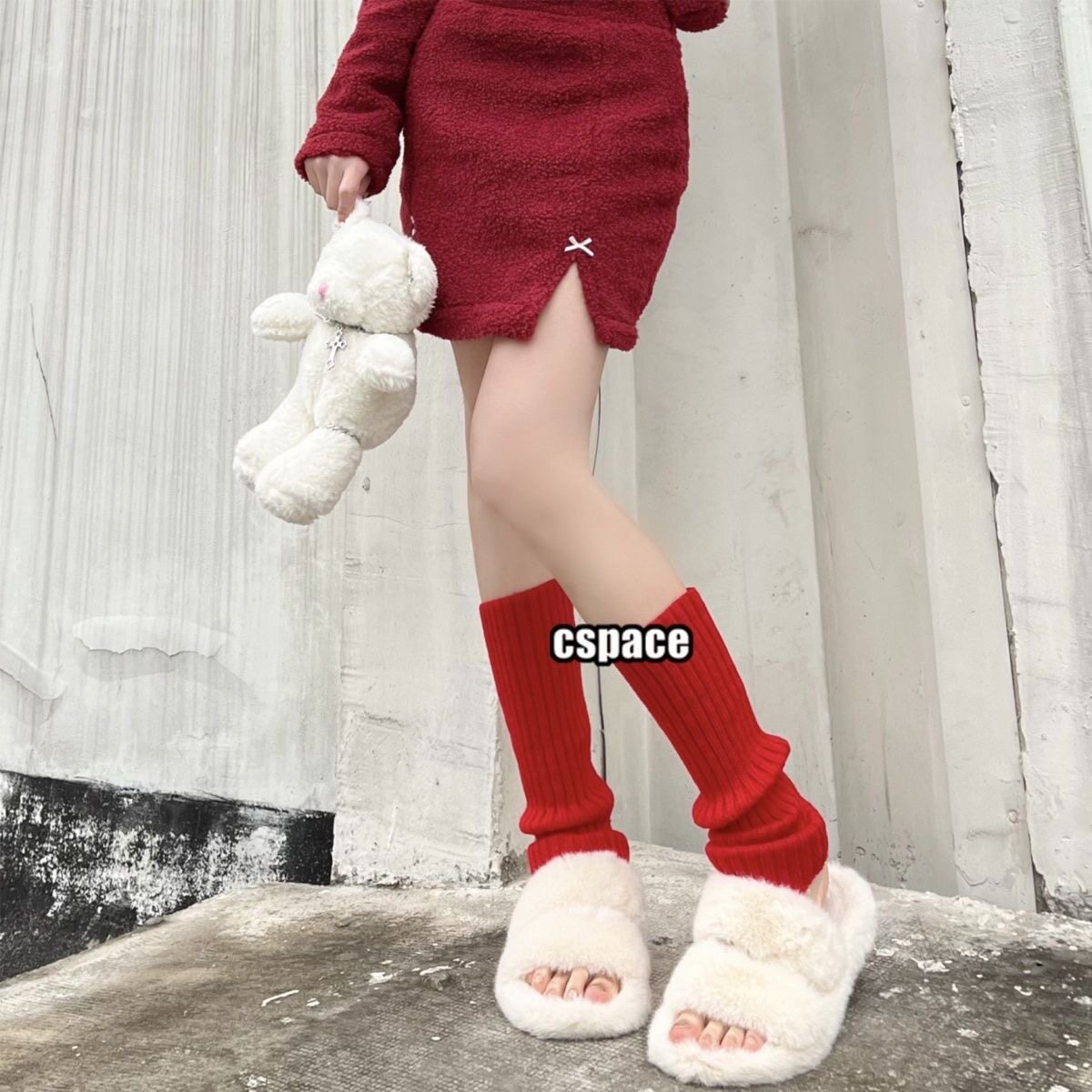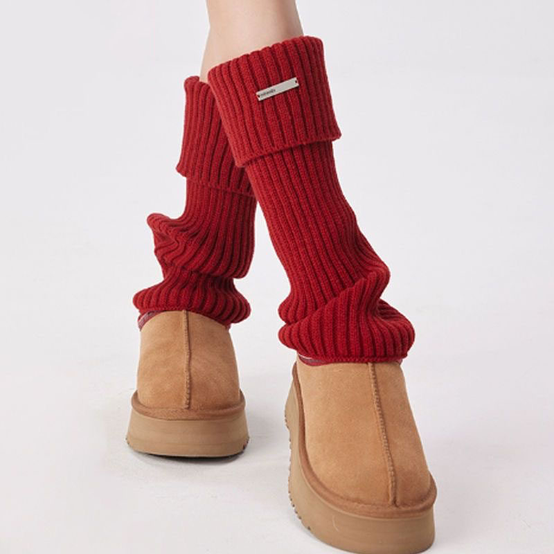 红色袜套女时髦百搭小腿套金属标美式复古秋冬季羊绒针织堆堆袜