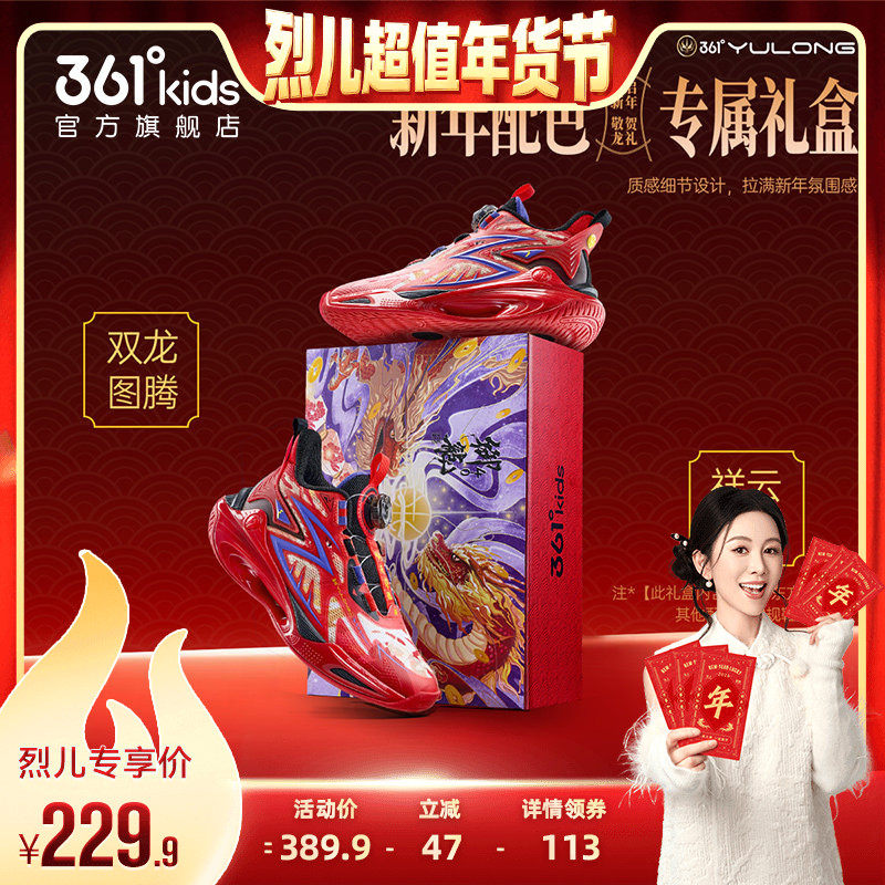 御龙|361度童鞋儿童篮球鞋男童运动鞋新款本命年红色青少年鞋子