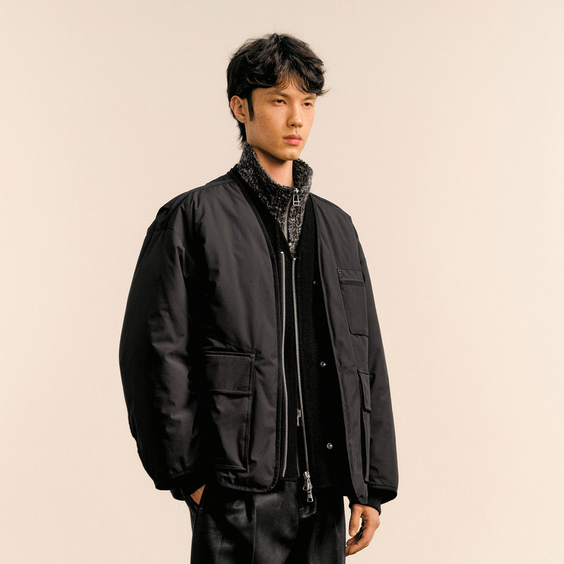 速写男装秋冬新款轻薄羽绒服宽松潮流假两件短款设计感外套潮复古
