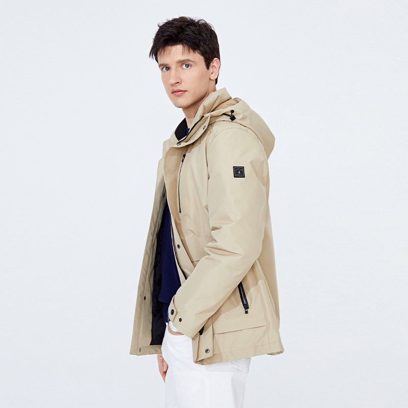 Navigare意大利小帆船卡其色轻薄羽绒服男冬季新款休闲连帽外套