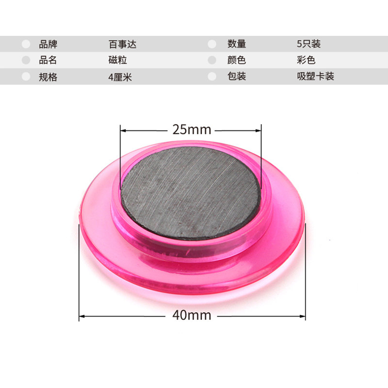 4cm彩色圆形磁扣磁贴黑板吸铁石教学白板贴办公磁铁磁吸磁粒磁钉