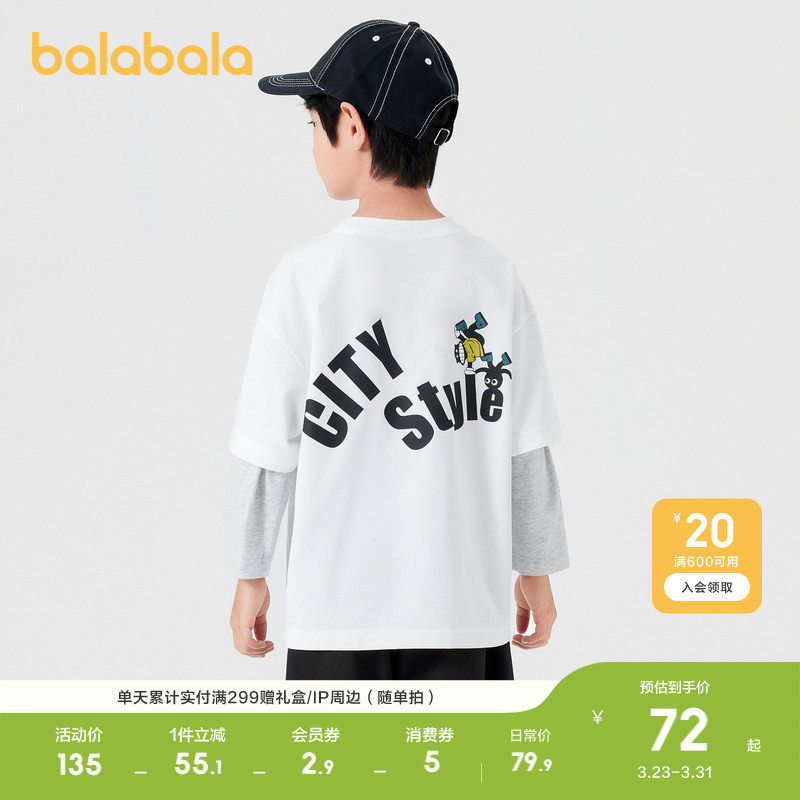 巴拉巴拉童装儿童长袖t恤男童女童打底春夏装假两件t休闲百搭上衣