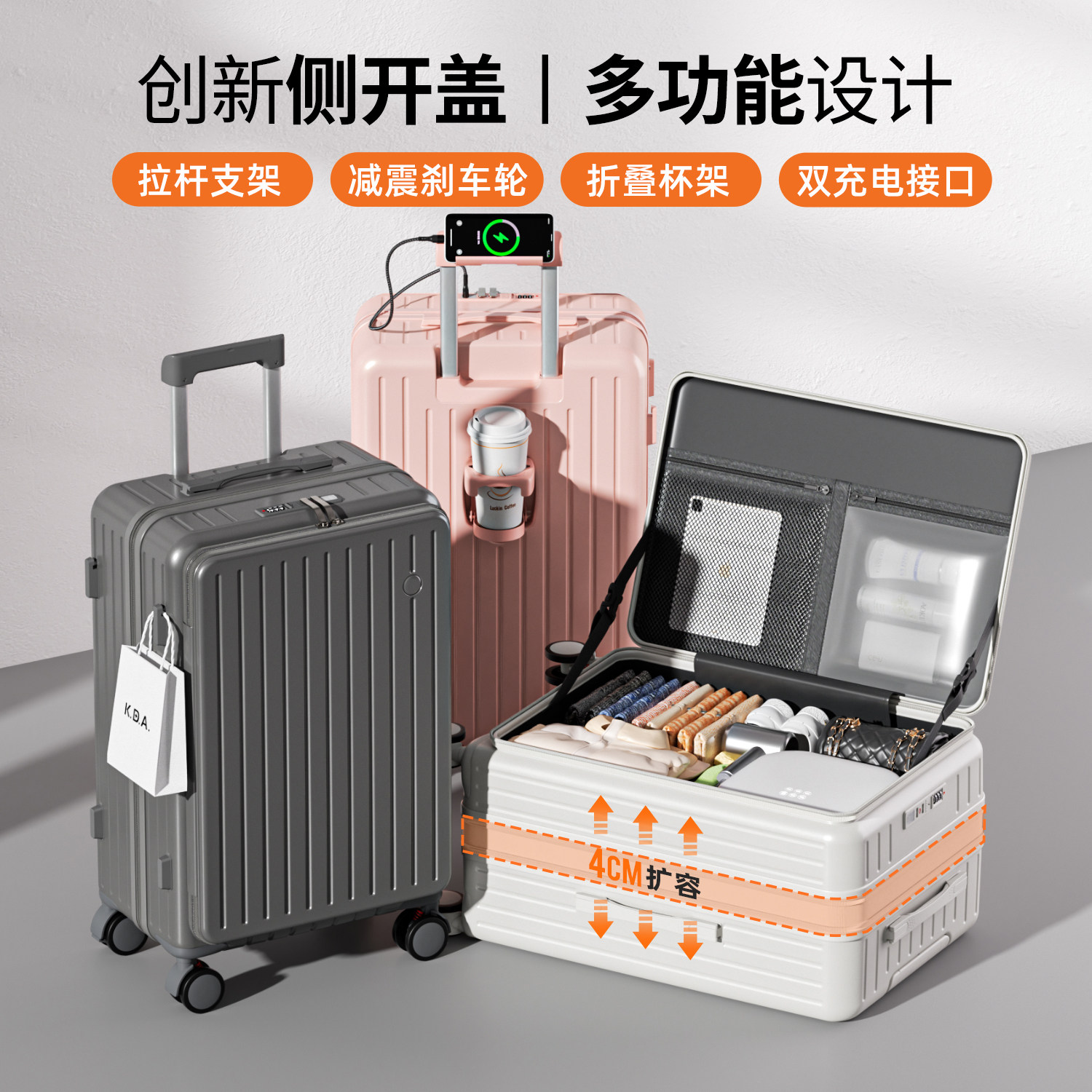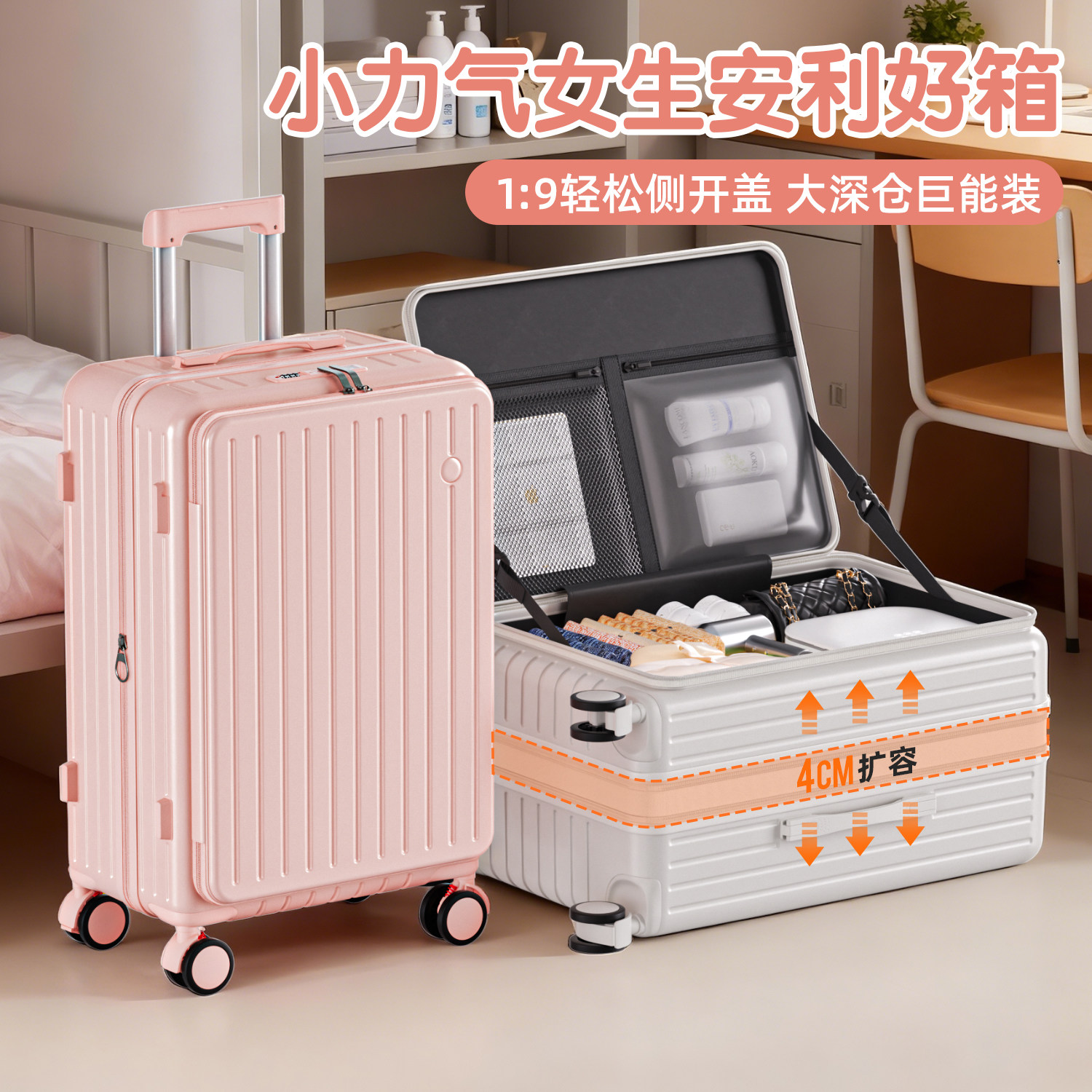 新款侧开行李箱20寸小型拉杆箱女26寸结实耐用男旅行箱登机箱主动