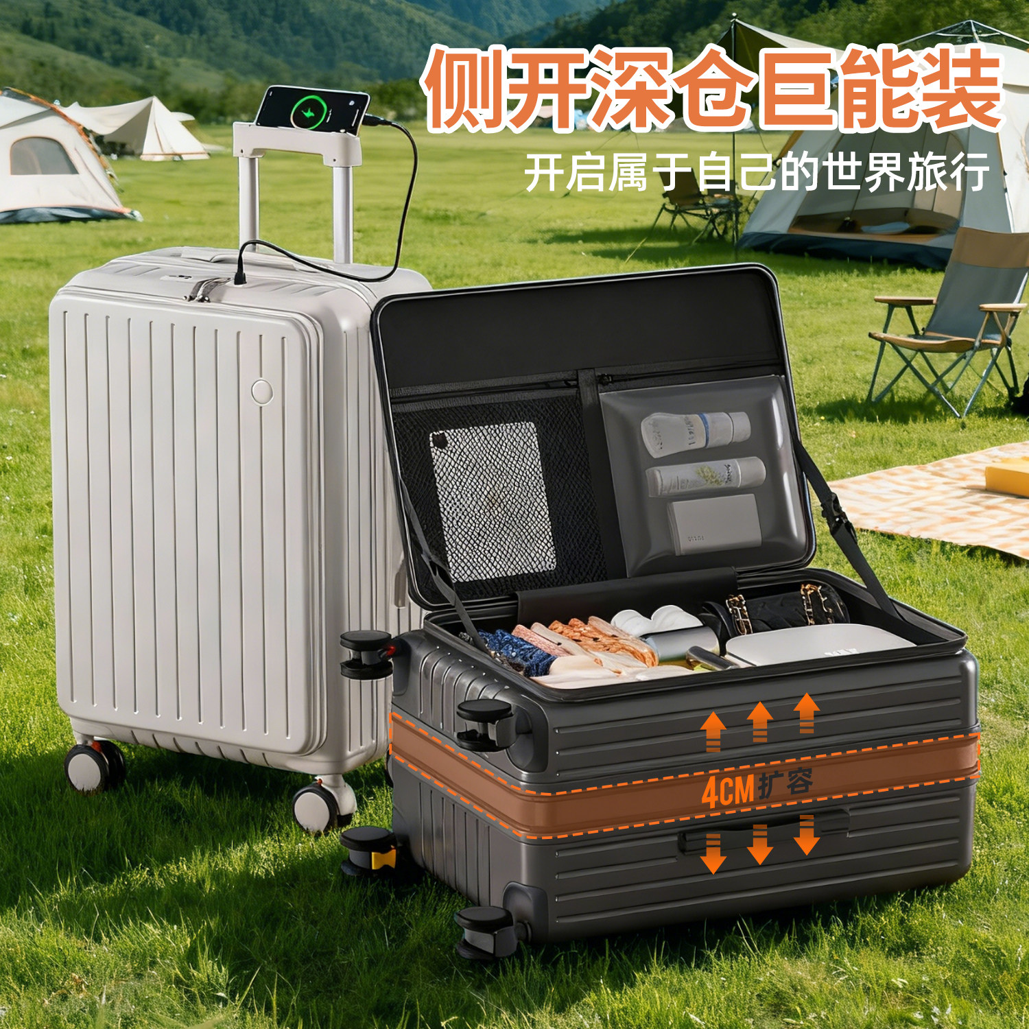 漫游新款侧开盖行李箱可扩展拉杆箱拉链20寸24旅行箱登机皮箱女男